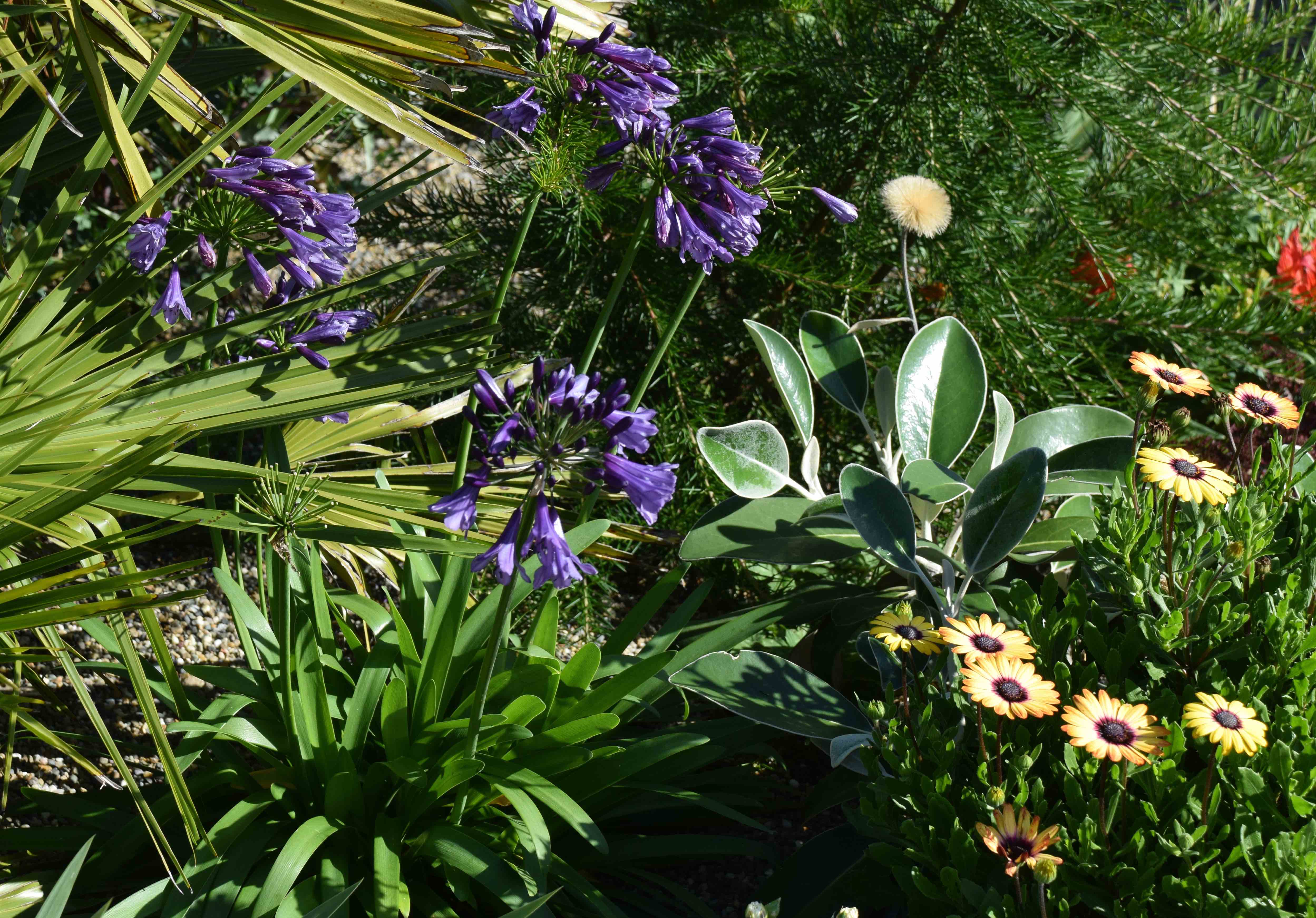 And I can’t conclude without a mention of agapanthus ‘Poppin Purple’. This recent introduction is promoted for its long flowering period as well as the purple colour of the flowers, which I like – but it is not blue! It is compact (about 40cm high) and neat and it really does rebloom again and it is still in full bloom, months after my other agapanthus have faded.