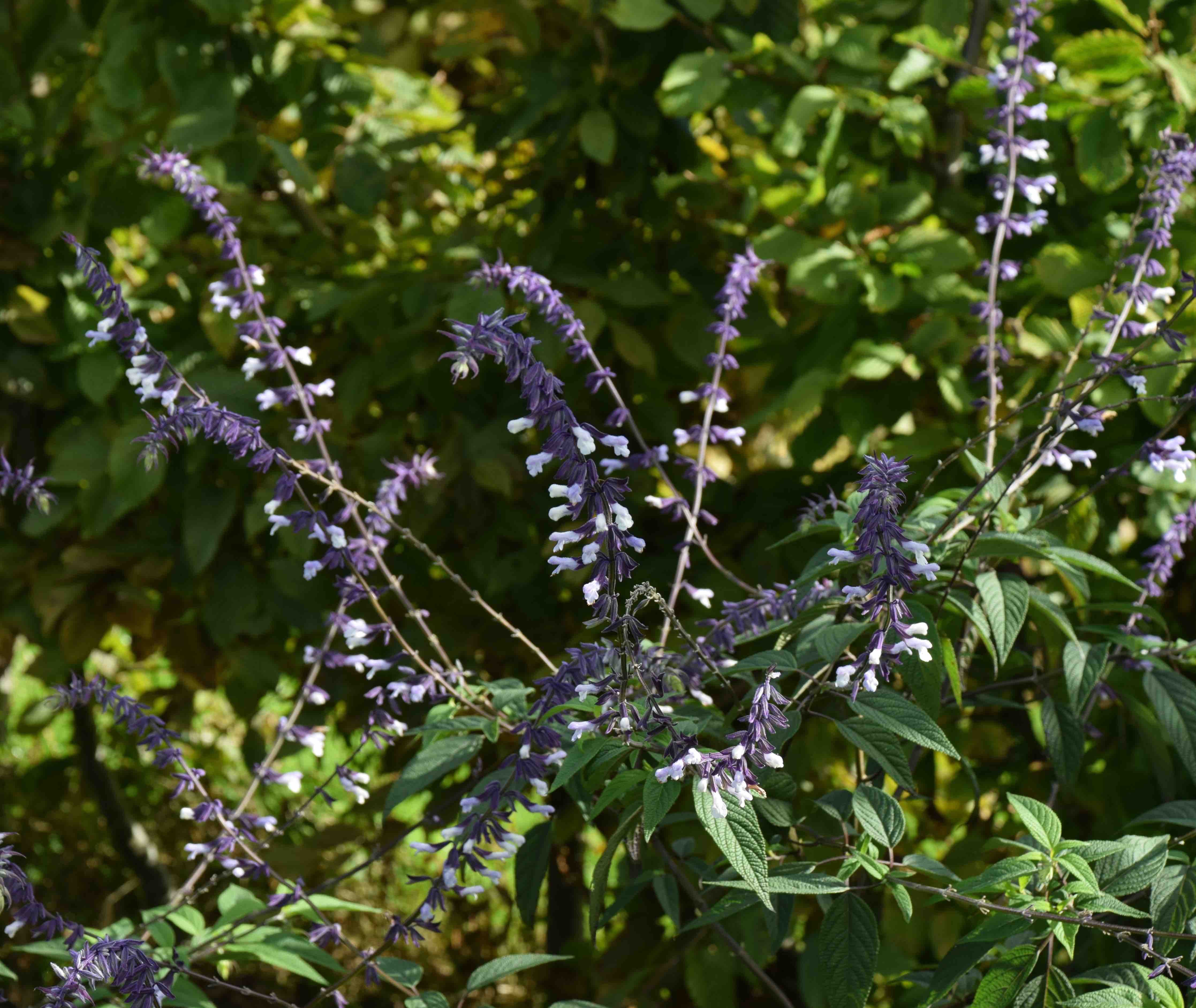 The salvias carry on regardless of the weather and ‘Phyllis Fancy’ is as good as it has been all season. It is, unfortunately, decidedly a short-day plant, only flowering freely when the days are getting short. So it is always a gamble whether they are going to make much of a display. Last year I took a few more cuttings than just to keep one in the plant library and so I was more generous, and less prissy, about planting them out. In response, in the big borders, they have grown pretty well and although not eye-popping, they are attractive. I have taken even more cuttings this year to experiment further next summer.
