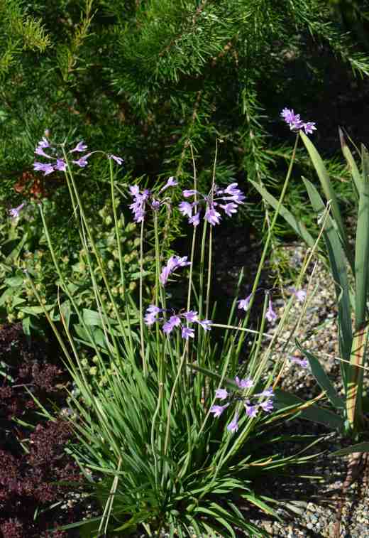 The nerine bed doesn’t really belong in this post as it is only just starting to bloom but as some of the tulbaghias share this south-facing spot it seems only fair to mention them.