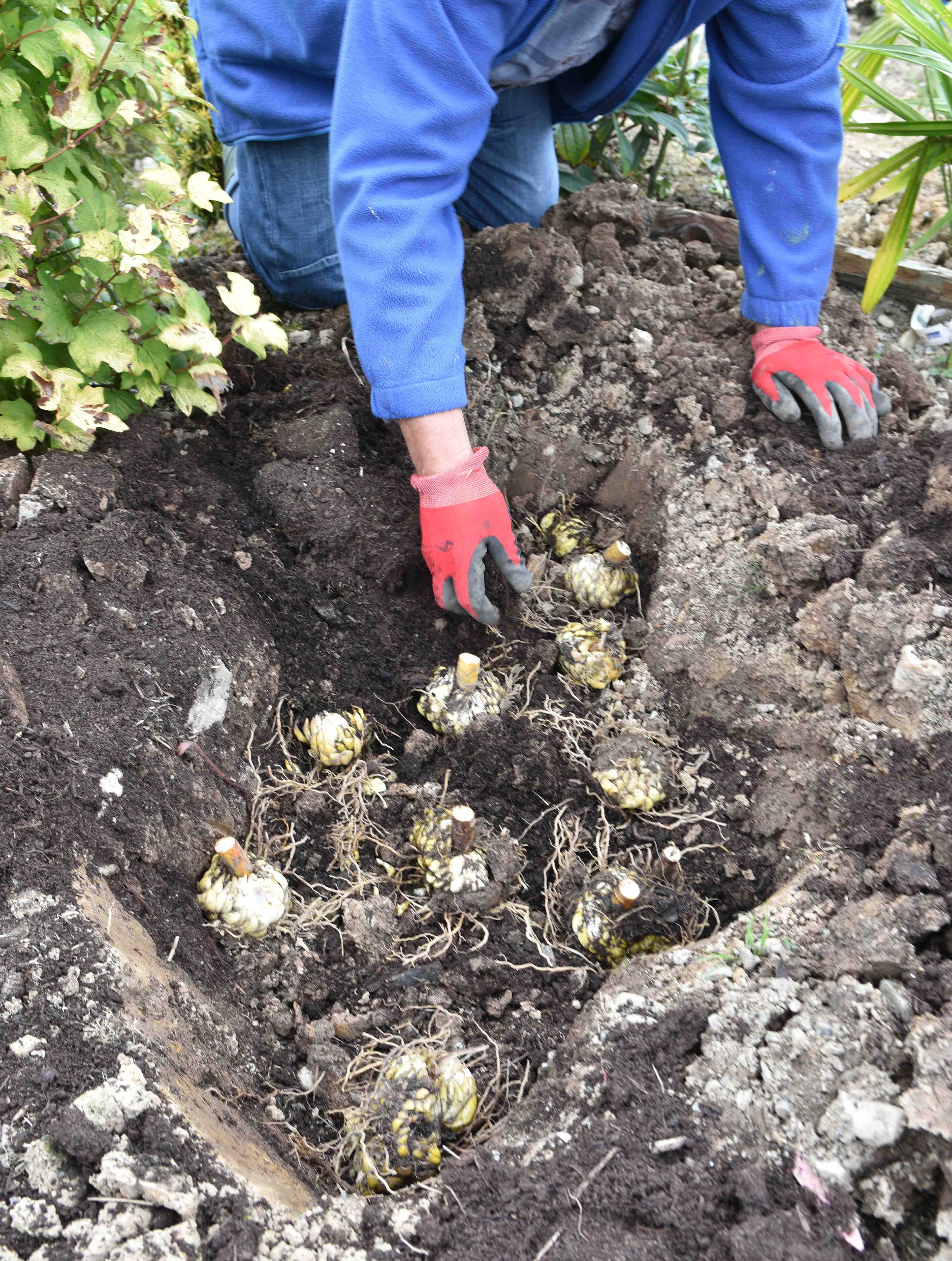 So lift the clumps carefully, making sure you dig deep and lift the clumps, then shake off the soil and cut back the old stems. You can then split the bulbs either singly or into groups of two or three.