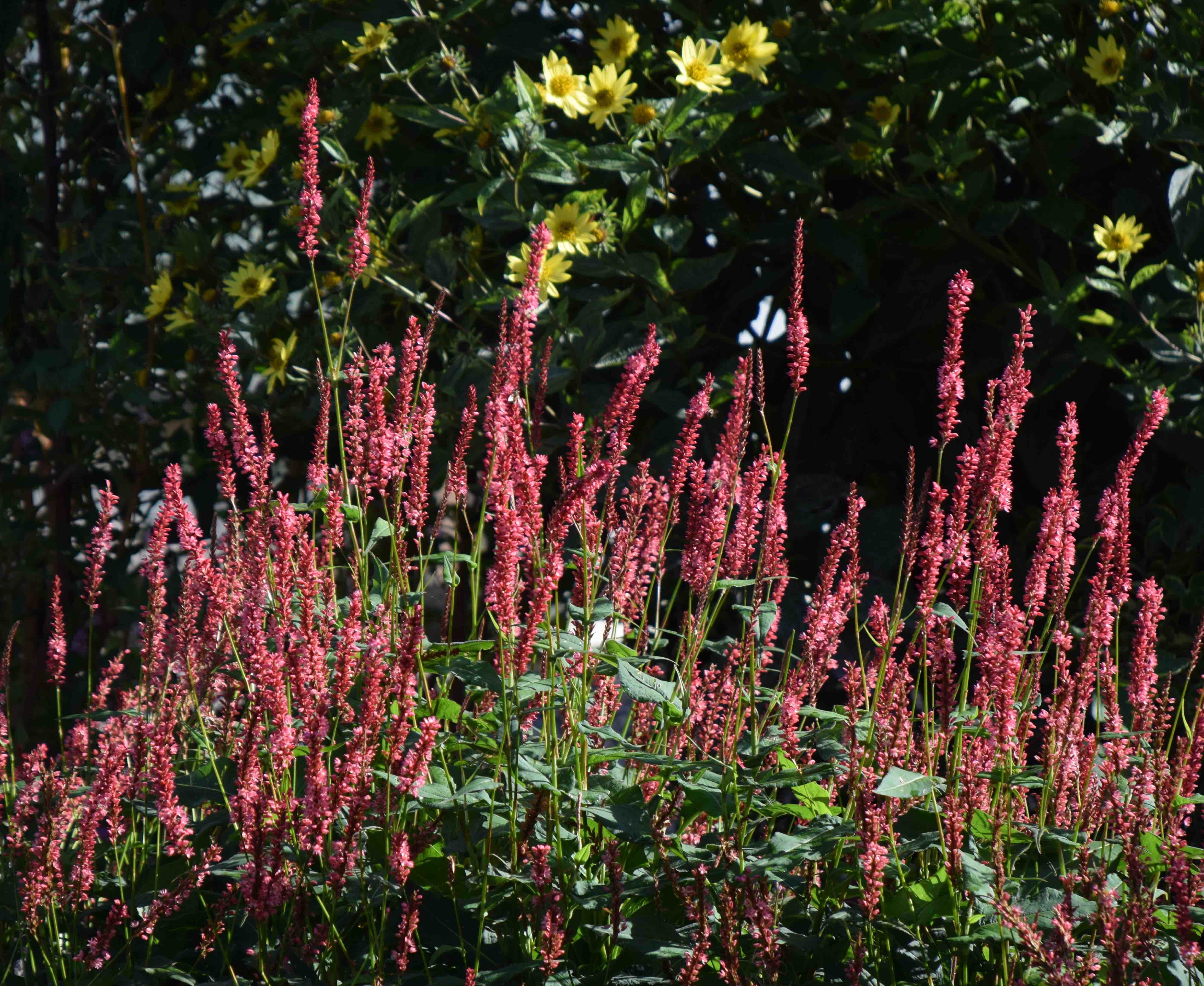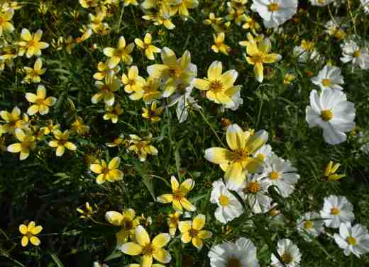 I learned last year that Bidens aurea ‘Hannay’s Lemon Drop’ flowers on and on, but this year it seems even better. The clump is now two years old and has lost a bit of vigour as a result and is half the height it was last year. It is a better height to combine with white cosmos.
