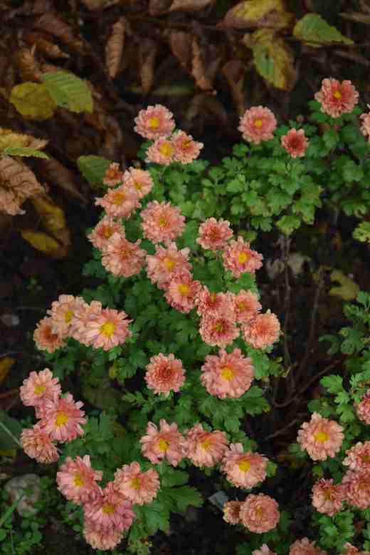 The old garden chrysanthemums are in bloom for a much shorter time but although they are dull for most of summer, they suddenly take centre stage and I am grateful for their flowers. When I wander round the garden I make a bee line for them.