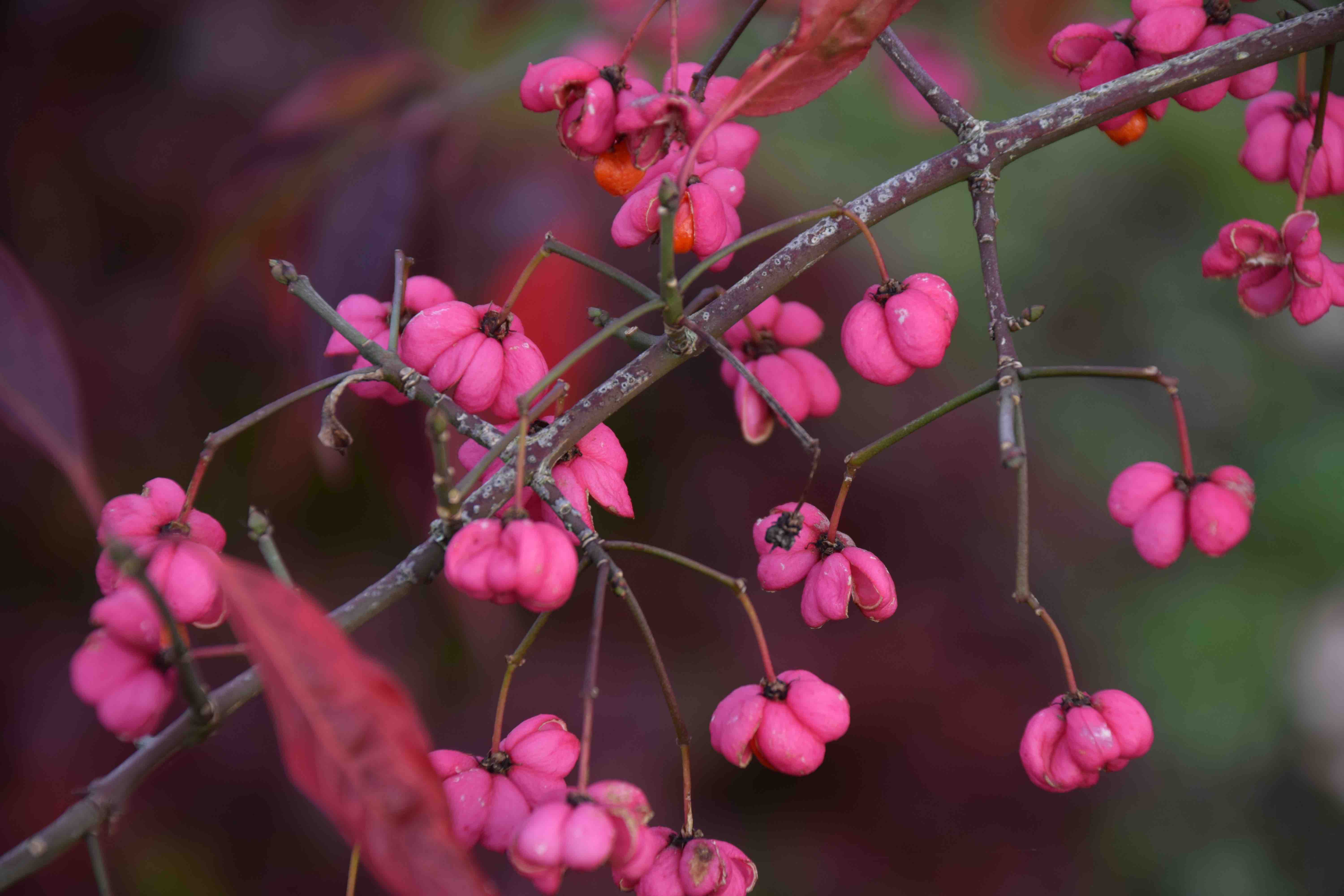 But even in the dull light the fruits of euonymus are bright and beautiful.