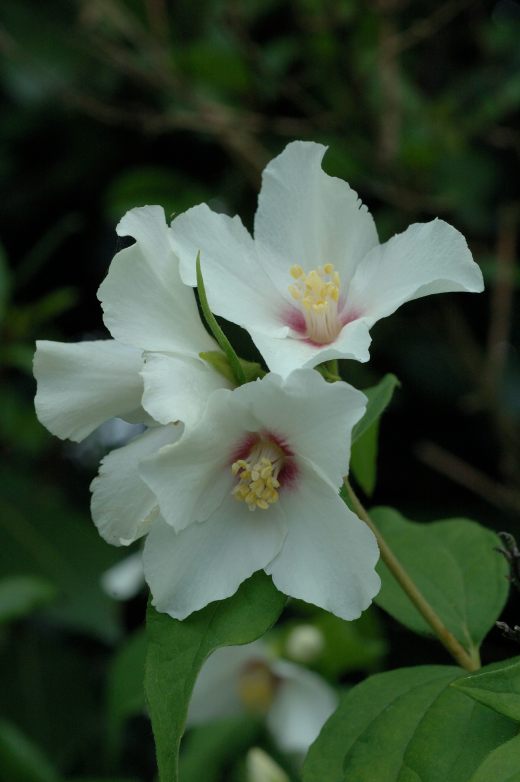 It is unfortunate that the most commonly available philadelphus is ‘Virginal’ which is very tall and upright when young. It then spreads and can be a large shrub. It is often much bigger than the planter imagines. Even ‘Belle Etoile’ (photo above) is quite a large shrub. If space is limited it is worth planting naturally smaller kinds such as ‘Manteau d’Hermine’ or one of the more modern dwarf kinds.