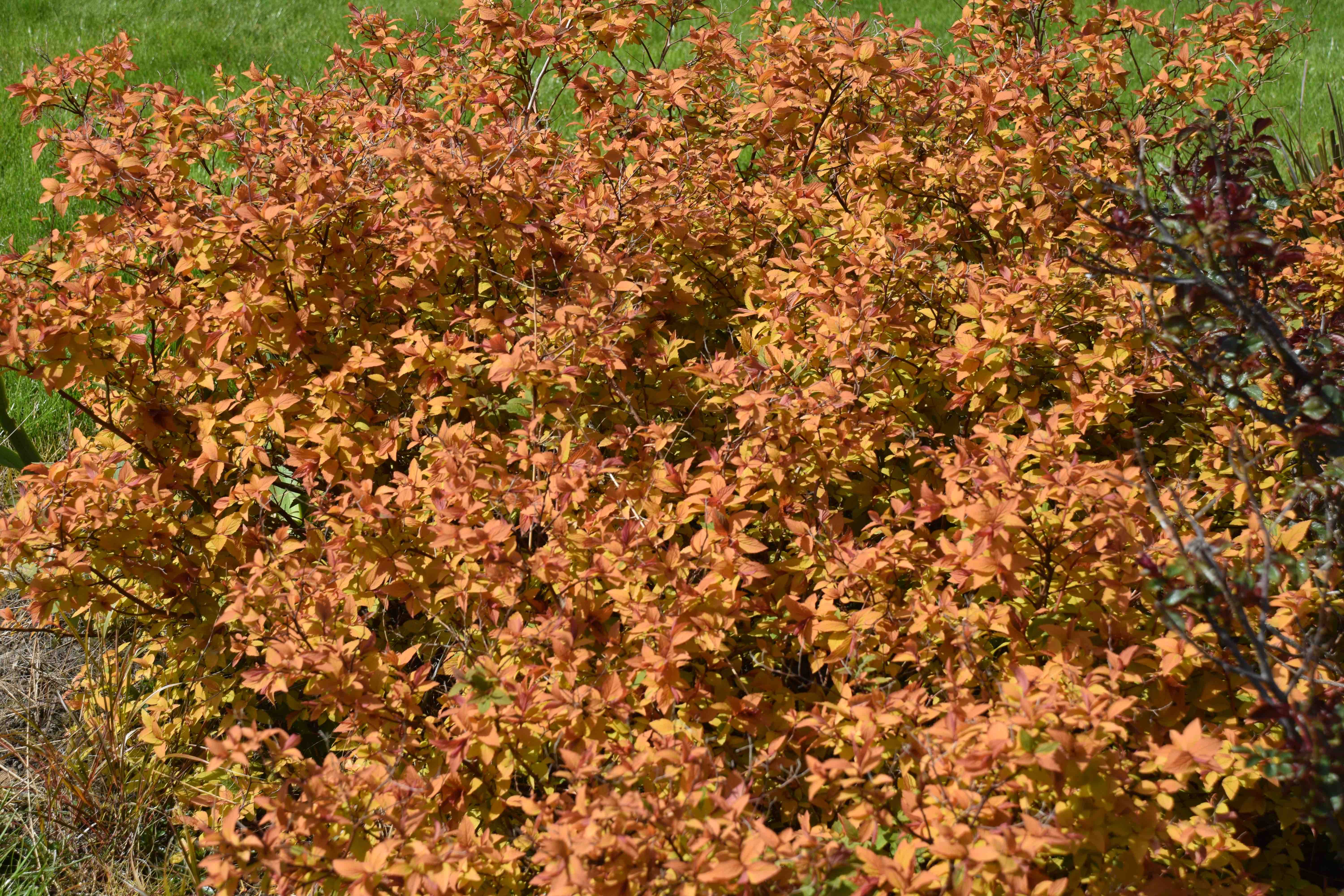 Spiraeas are a bit old-fashioned though a lot of breeding has been done with Spiraea japonica and there seems to an endless stream of cvs with various versions of coloured foliage which does not always augment the pink flowers. A possible big improvement are the Double Play (R) series that have a prolonged (repeating) flowering period but I have not grown any. It is still hard to beat ‘Goldflame’ in my opinion (below), since it is colourful and vigorous. Some of the new kinds are bred to be compact, which I have experienced as ‘weak’ in the garden.
