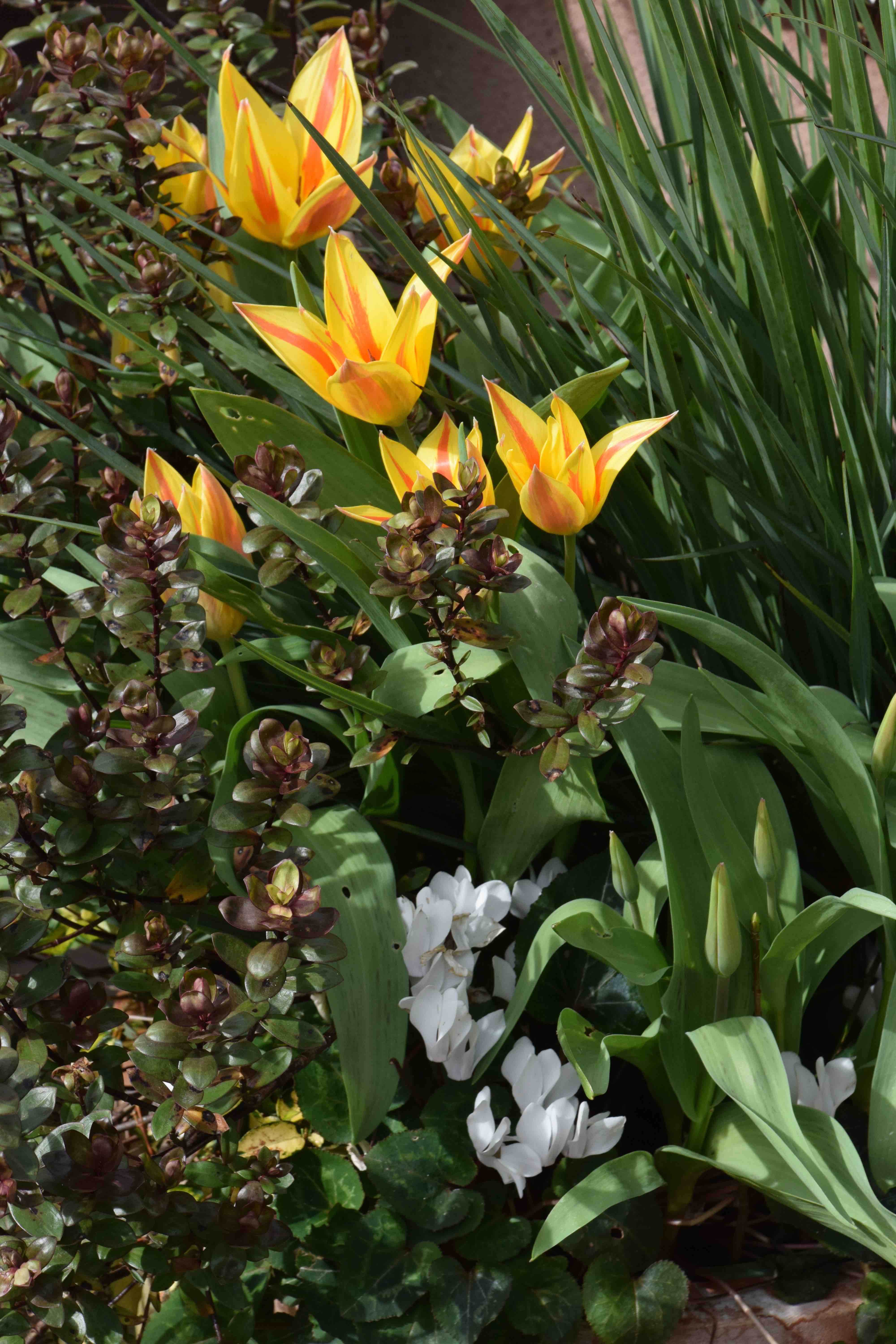 T. sylvestris has grown here for many years but has not increased to any extent. T. acuminata does better, increasing pleasantly. T. bakeri ‘Lilac Wonder’ grows like the clappers and is invasive while T. sprengeri also grows very well, spreading strongly by self-seeding. The ornamental tulips are purely for annual pot display here.