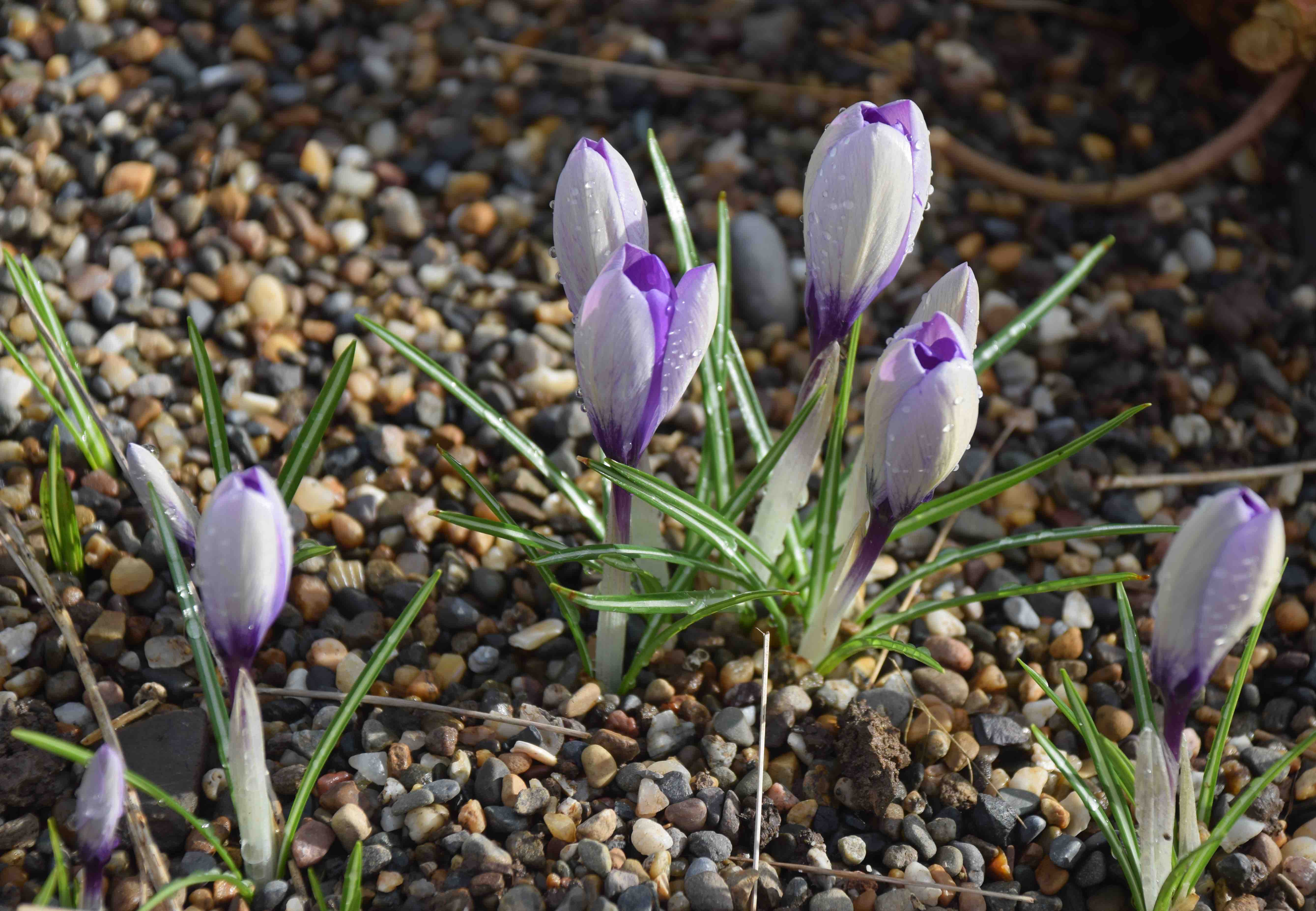 ‘Yalta’ is probably a hybrid of the prolific C. tommasinianus and (‘regular’) Crocus vernus selected by Latvian crocus expert Janus Ruksan. The contrast of the paler outer tepals and darker inner ones makes it distinctive – well on a warmer day than this!