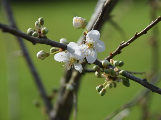 But the big problem last year was not a lack of buds, or that they were frosted, but bullfinches that stripped all the buds off as soon as there was a hint of white. They worked their way over the trees and removed every flower. I have noticed that a handsome little bullfinch has been joining the robins and tits on the bird feeders in the past week so I hope I am in time with the bangs and flashes this year and I might get a crop. Hopefully this is the first stage in ensuring a crop – just the frosts and wasps to worry about now!