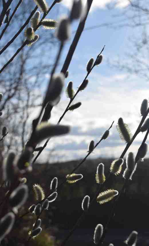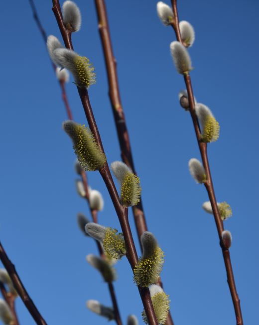 As it happens mine are not actually wild willows but Salix daphnoides that I planted. The stems are dark and a good contrast to the ‘pussies’.