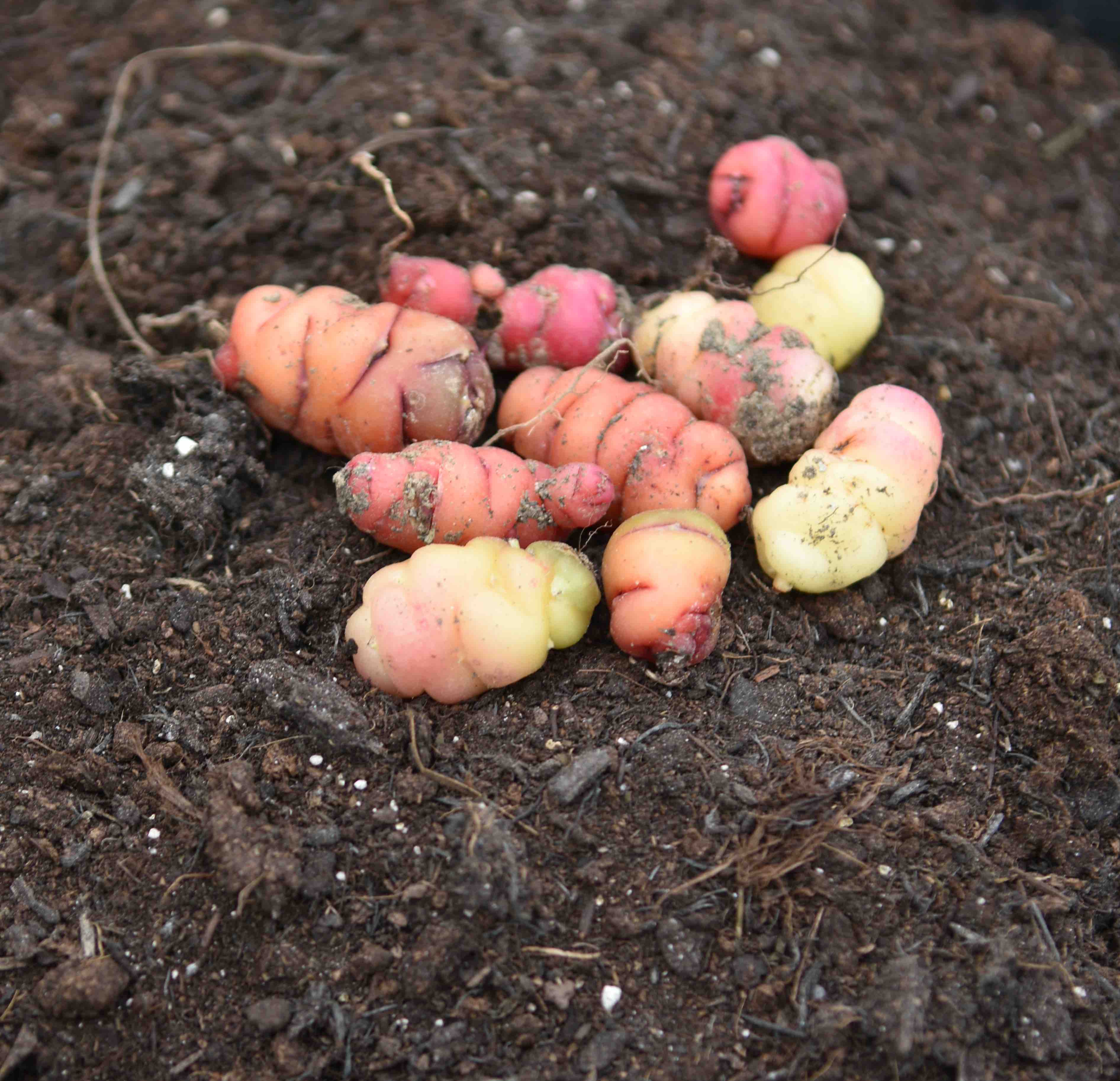 And so we come to Oca. It is easy to grow, has no major cultivation problems and has attractive, weed-smothering foliage. It is an oxalis, which may strike fear into the hearts of some, but it is not invasive. The edible bit (you can nibble the leaves if you need to) are the stem tubers which are formed just below the surface. The problem with this crop is that the tubers do not form until very late in the year, often after many of us have had the first frost of autumn, which kills the foliage. So you either have to cover the foliage in autumn with fleece, or grow it in pots you can move around, if you don’t live in a mild area. If you live by the coast and have sandy soil you may be laughing. But I am not. So I have grown it in a polytunnel and the crop is not really worth the effort. The tubers are surprisingly bland and a good alternative to potatoes. But at least they don’t get blight. But nor do cream cakes and I know which I would rather eat.