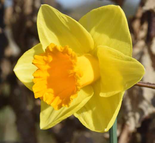 ‘Porthchapel’ (pre 1953 7 Y-O) is grown for scent, being a jonquil. The foliage is narrow too and the clump produces lots of stems although they mostly have just one bloom, while they potentially could have up to three, and should have two, being a jonquil. Tall, slender and scented is a feature of jonquils and is not lost on this, unusually colourful variety.