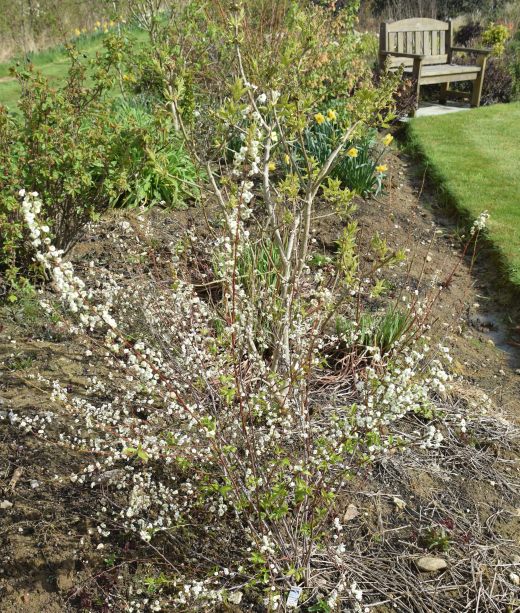 I had no real reason to plant this, but bought it because I had no idea what it was. Nice surprises often follow chance plantings. Spiraea prunifolia was added because it grew in a garden when I was a child and had never seen it since. Spiraeas have had a lot of attention from plant breeders, mostly S. japonica which is now available in a bewildering variety, all rather similar. But this one is very distinct and has one season of interest; in spring when it is covered in pure white, rose-like blooms, though there can also be good autumn colour too. I wanted it so badly that I made up an order to get it and bought three in case something awful happened if I only bought one! That shows how much I needed this plant.