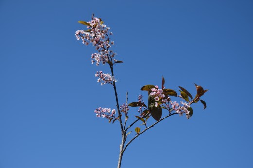 A year or so ago I did something unusual and sensible and planted a group of bird cherries on the west side of the garden. It would be too ‘grand’ to call it an avenue (there are only seven) or even two rows, since one row is of four and one of three. But the idea was to form a shaded ‘row’ in time. As it turns out, they must have been grown from seed at the nursery since, despite being named as Prunus padus ‘Colorata’ there is a variation in flower and leaf colour and not all have deep pink flowers and purple young foliage. I am not that bothered by that, as it happens, because I was slightly worried about planting what is, in effect, a purple-leaved tree in a rural area. Purple trees can be striking but they can also stick out like a sore thumb. I am not in an area of special natural beauty but I do consider my actions responsibly. The fact that there will be variation in leaf colour, and that it fades to dark, rather dull, green by summer, allays any fears I had. Not that you would really notice when your eye is more likely to be drawn by next door’s photinia hedge that burns brighter than a tiger in the night!