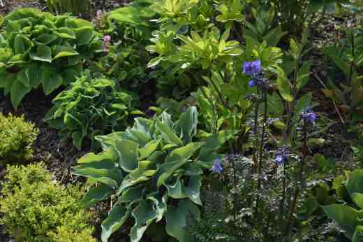But the hostas are looking fresh and lovely, and I will avert my eyes from those that have the worst slug damage. A snail has hauled itself up the styrax tree and is nibbling leaves 2m up. That is just not on!