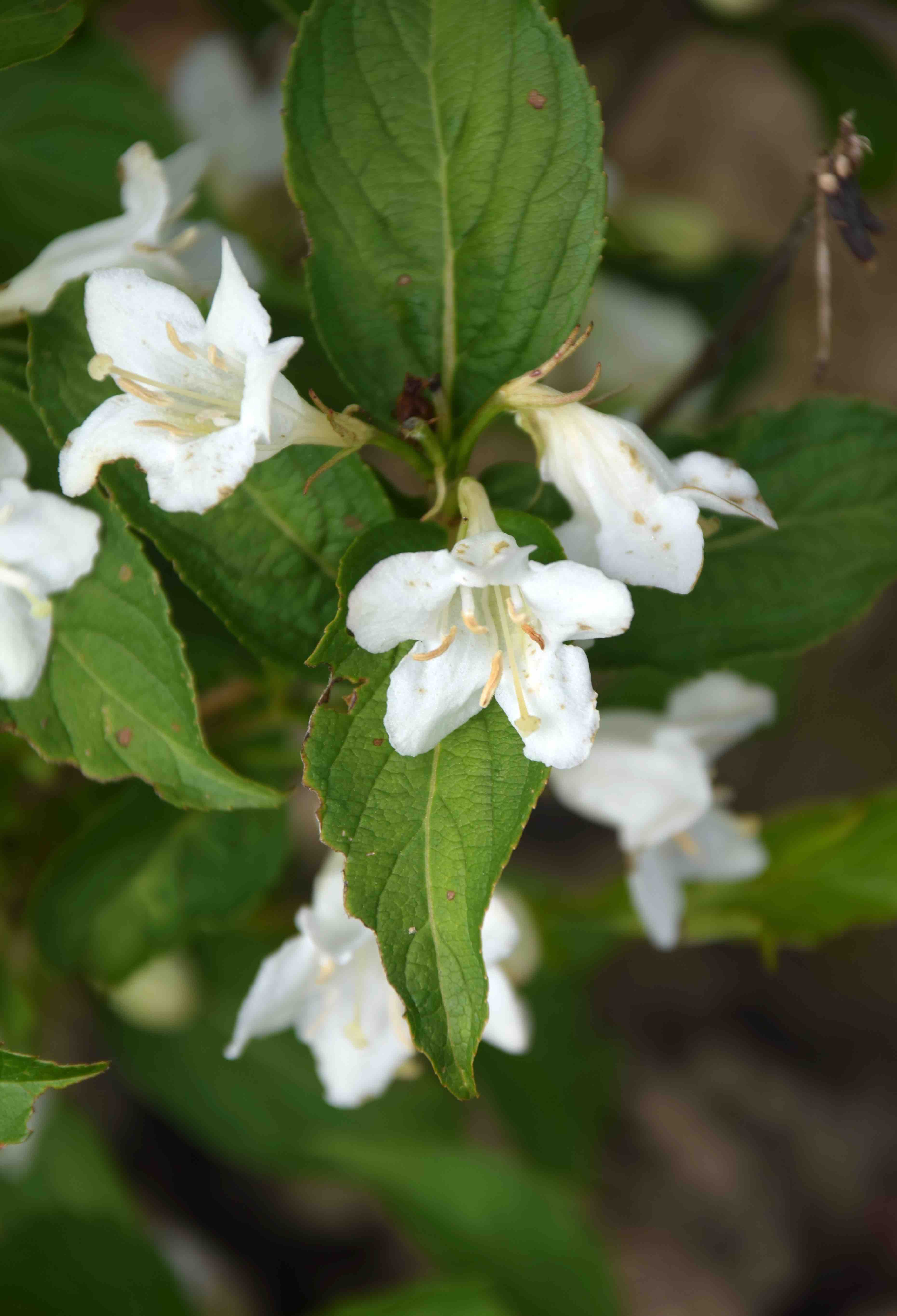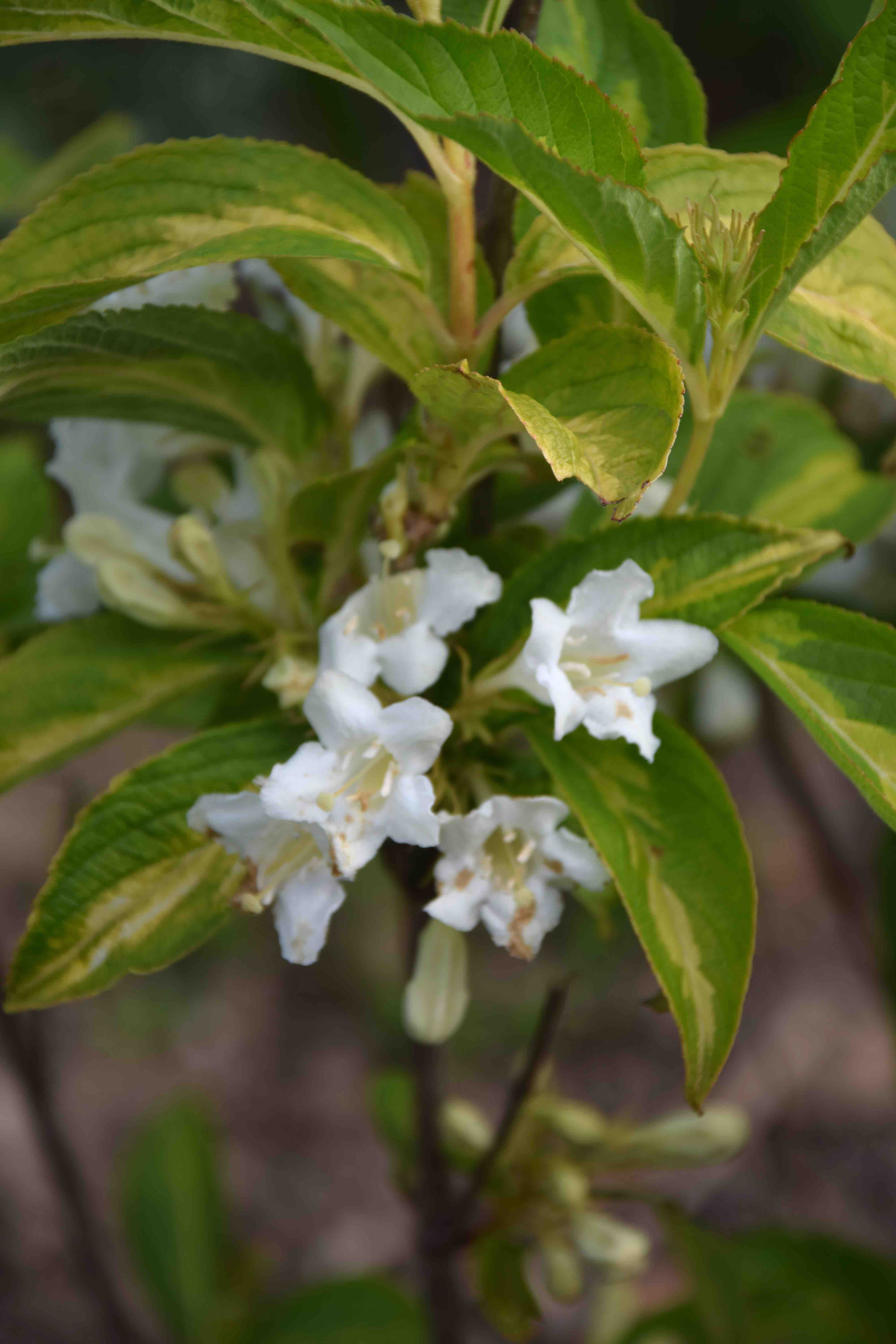 ‘Milk and Honey’ is a new one to me with white flowers and leaves with a central gold splash. I like all variegated plants (well most) and particularly admire those with white or yellow central blotches on the leaves. I can’t find out much about this one and it either reaches 1m or 2m and it appears to be new although one site uses the name for what appears to be W. middendorffiana – a yellow-flowered species. Although my plant is young I like the combination and I can’t wait for it to mature to whatever height it decides.