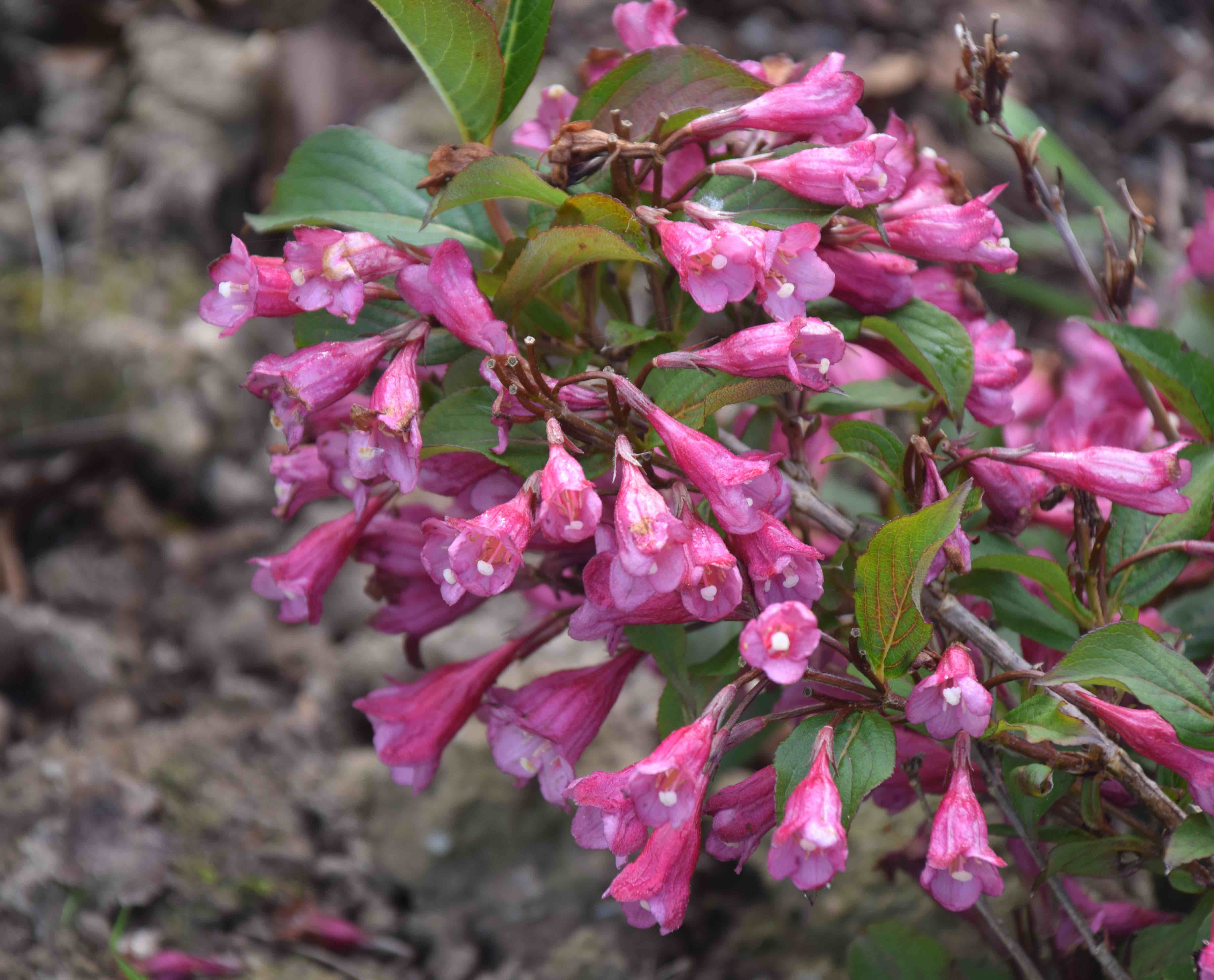 Several ‘Alexandra’ (which we know as ‘Wine and Roses’) were added to one of our landscapes last year. I prefer weigela with green or variegated foliage, but this particular cultivar happened to provide the best color combination for the particular application. I am certainly pleased with them now, and pleased that they are an old fashioned species, even if a more modern cultivar.
