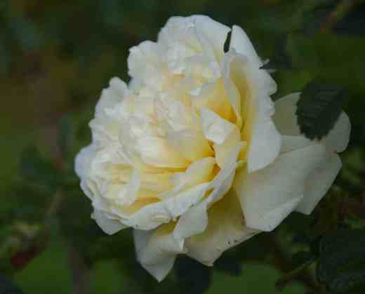 The flowers are soft, butter yellow, fading as they mature and are sweetly fragrant. The fragrance is often described as ‘light’ but it seems OK to me. But without flowers this rose has little to commend it, unless you want it as a barrier. Like most rugosas, the stems are covered in bristly, sharp spines, and it is not a plant you want to pick a fight with.