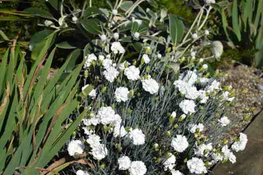But most people want short plants and the habit is neat. I find it has a big flush of wonderful flowers and only repeats slightly so although there are flowers later in summer, they don’t make a big show. But then my plant is in a raised bed which can be dry in late summer and that could restrict new growth and flowering. When introduced, sale of the plant contributed to Alzheimer’s Disease research, hence the name. And it does smell just like the pinks of your childhood.