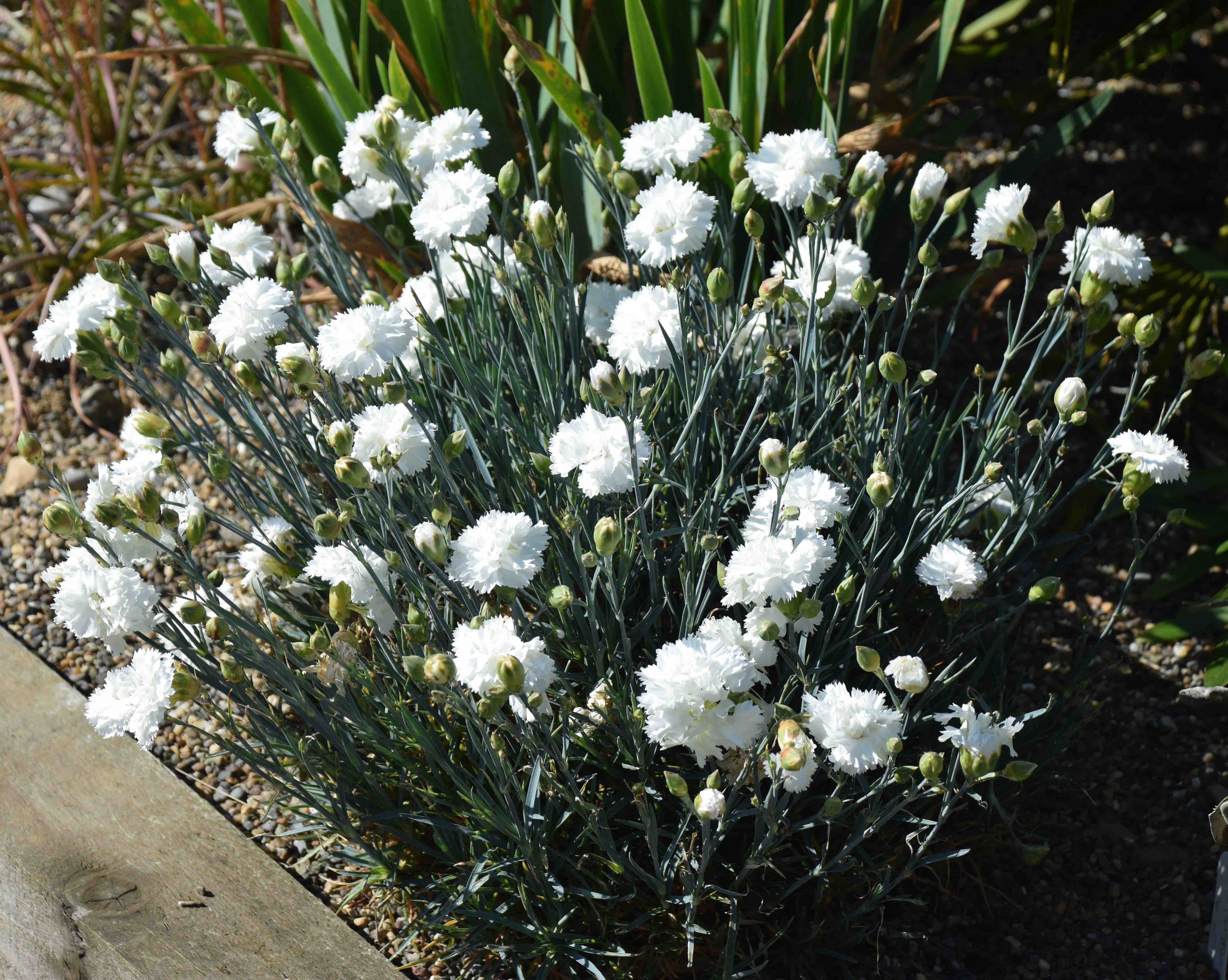 But most people want short plants and the habit is neat. I find it has a big flush of wonderful flowers and only repeats slightly so although there are flowers later in summer, they don’t make a big show. But then my plant is in a raised bed which can be dry in late summer and that could restrict new growth and flowering. When introduced, sale of the plant contributed to Alzheimer’s Disease research, hence the name. And it does smell just like the pinks of your childhood.