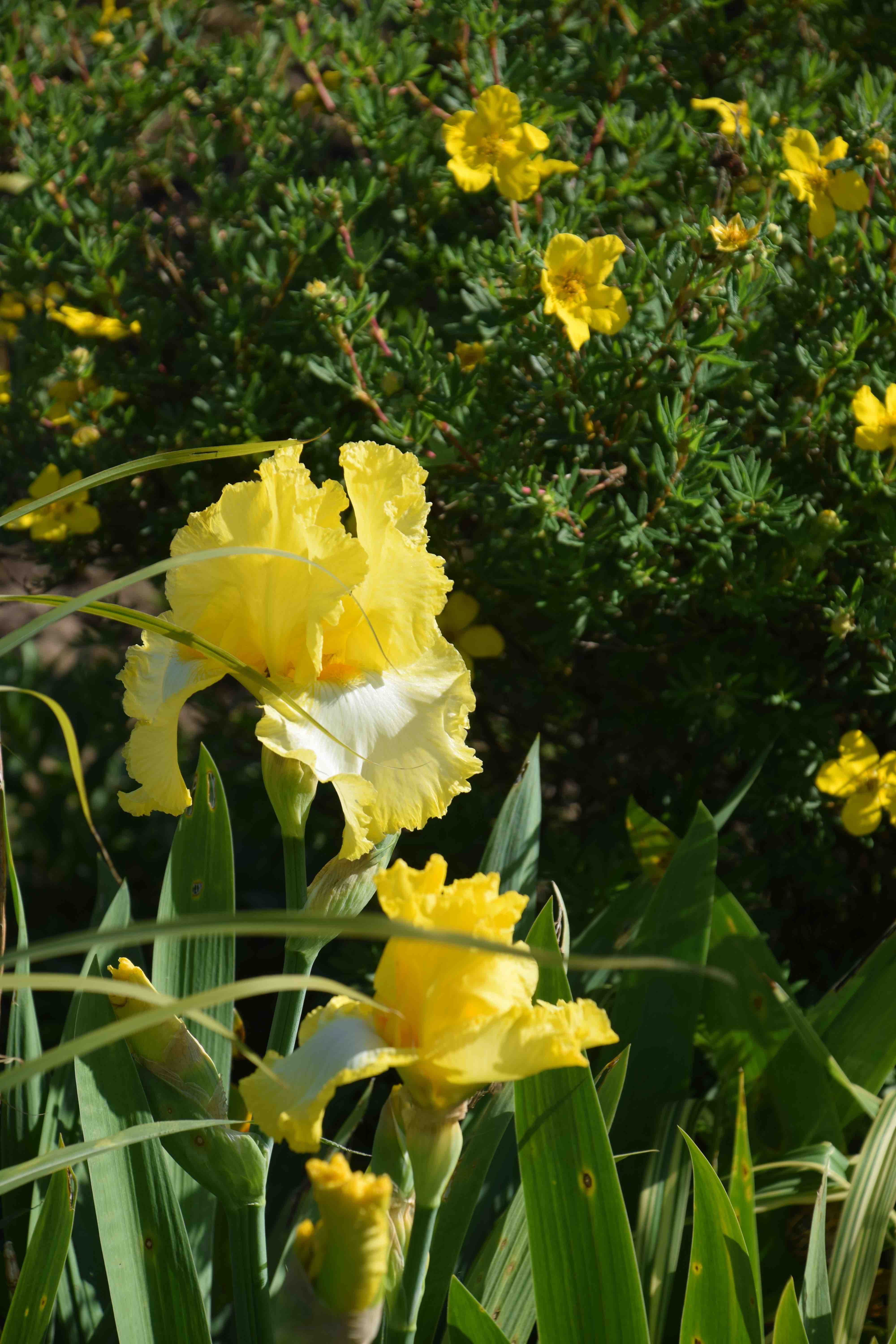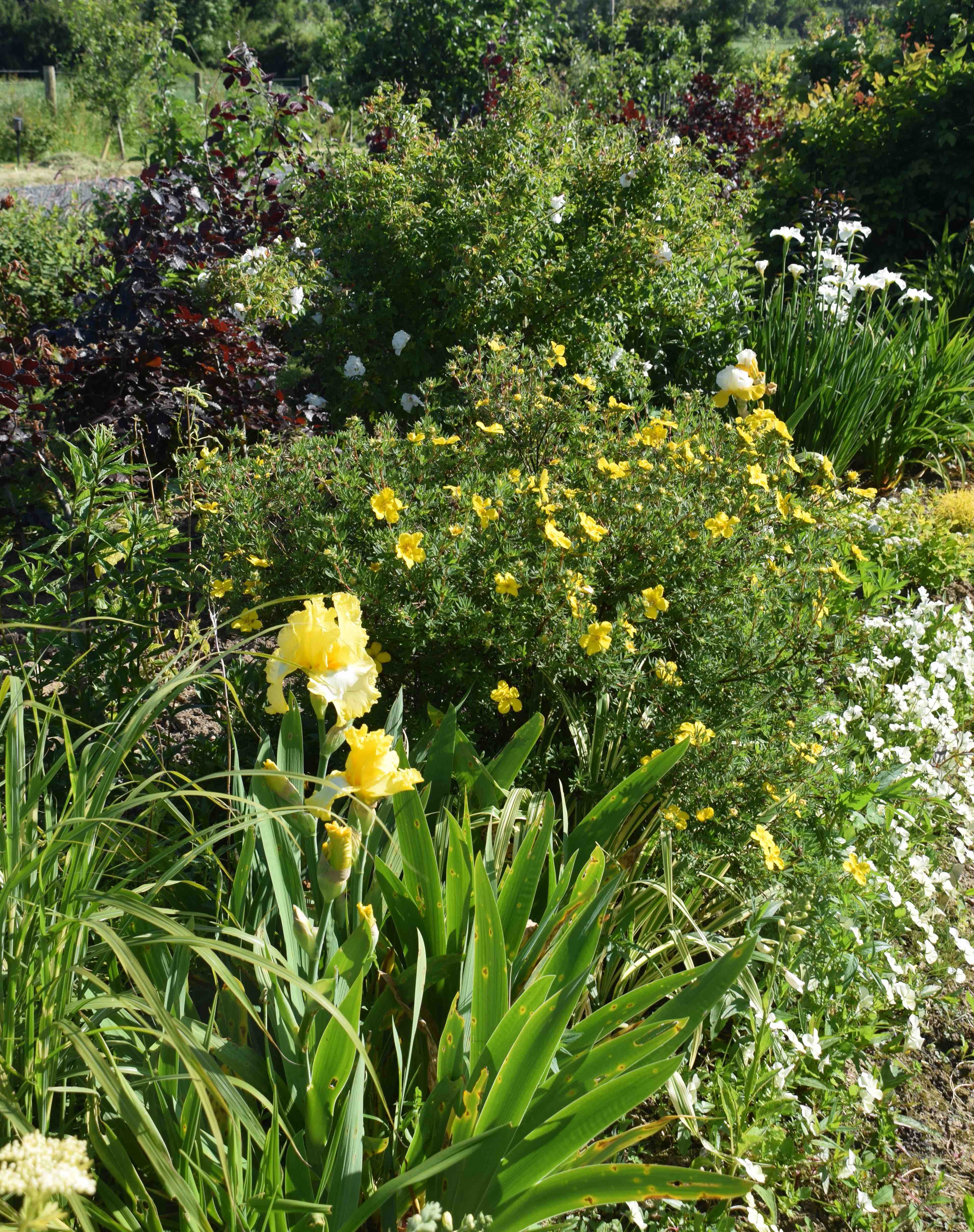 Elsewhere in these borders yellow and white dominates with iris, potentillas and violas.