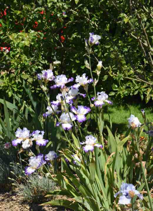 Few words this morning. No moaning about the dry soil. No mention of what has to be done in the garden. Just photos of some iris and roses in the garden. But a few names and a couple of explanations. I just can’t help myself.