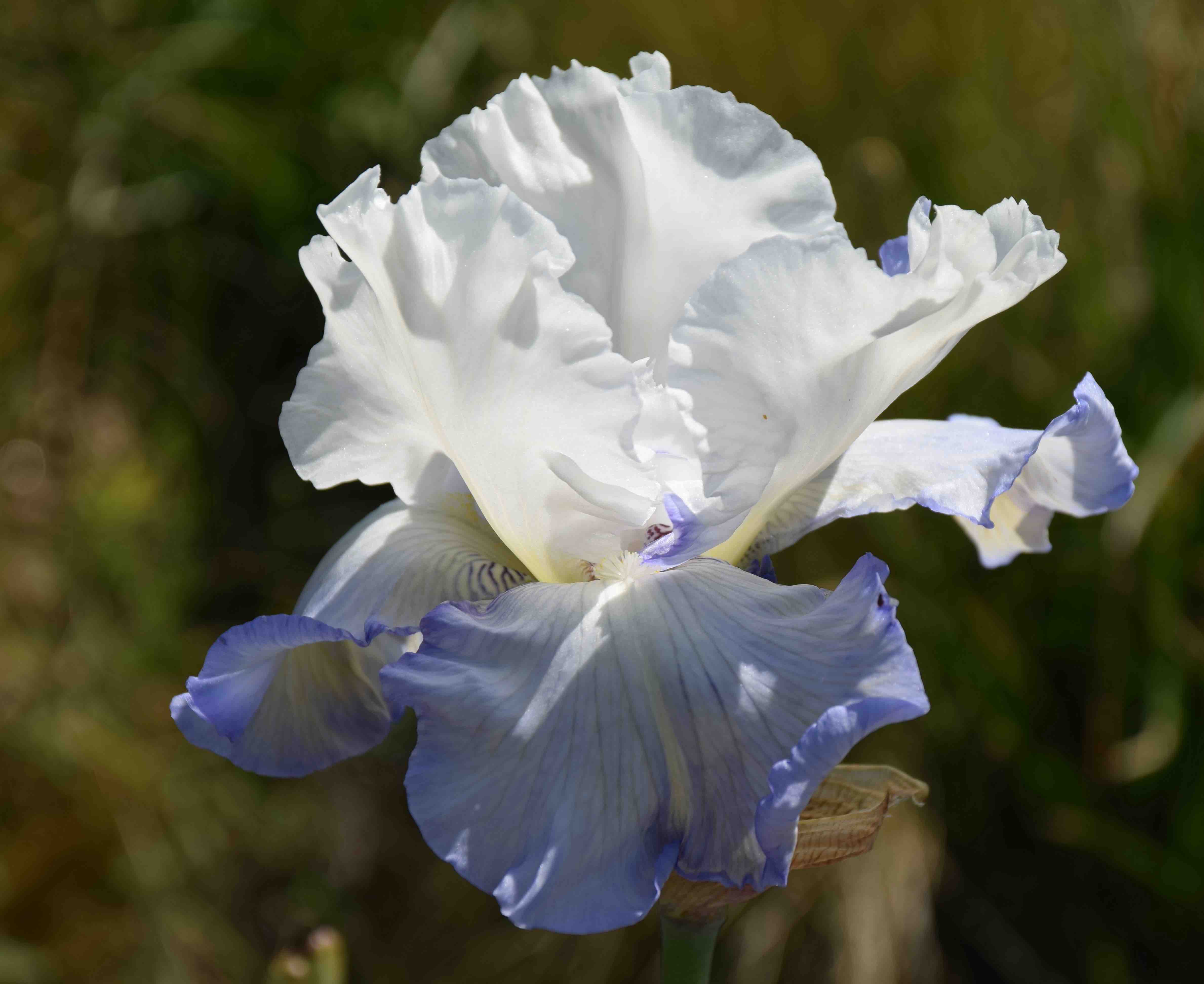 Among the iris I brought with me were some seedlings from crosses I made a long time ago. None are worth keeping and this one is nothing special but I will keep it because it was a survivor – no other reason!