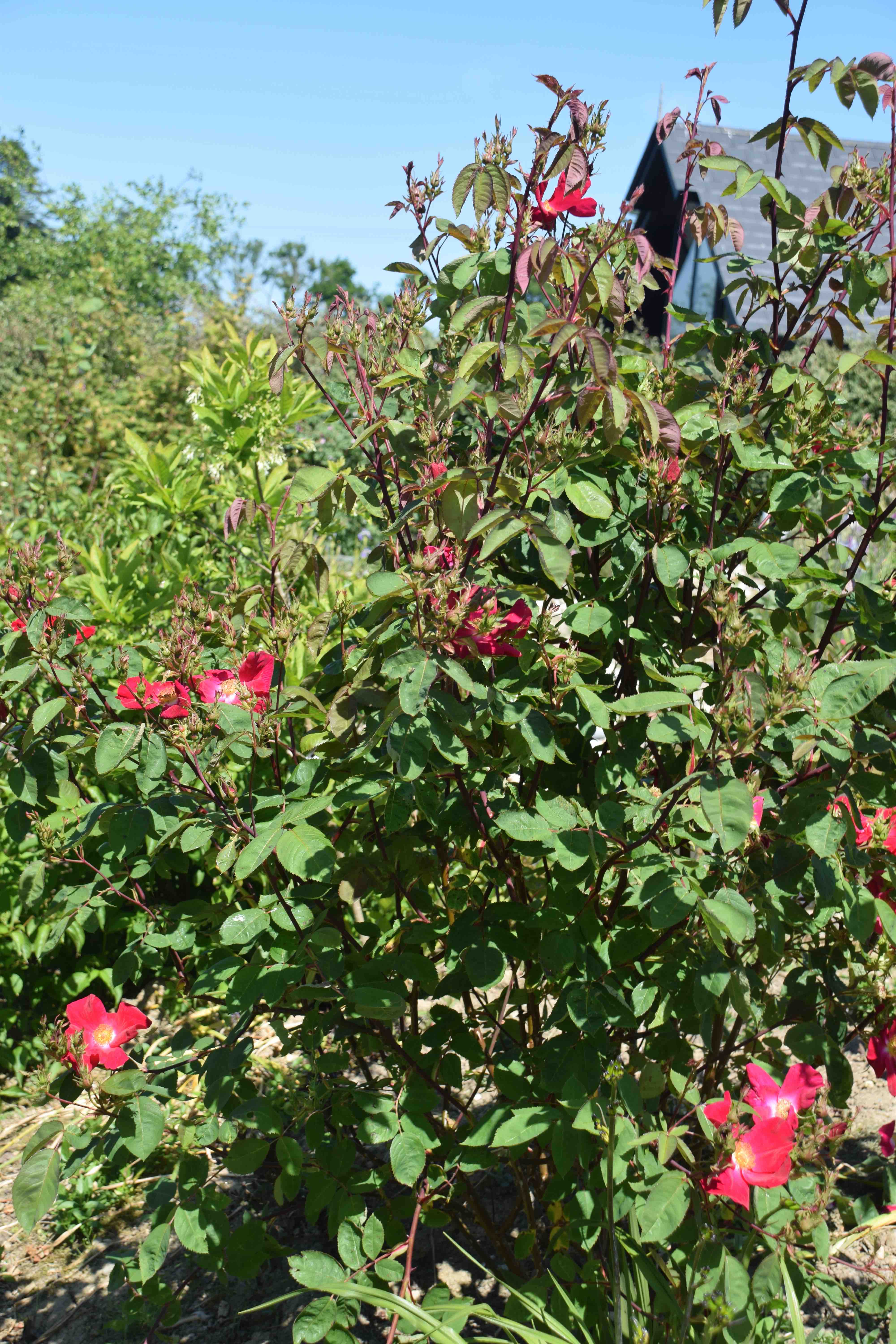 Two roses that look similar but are very different: The relatively recent (2015) ‘W B Yeats’ bred by Dickson’s Roses, Co Down. It is compact, very showy and healthy.