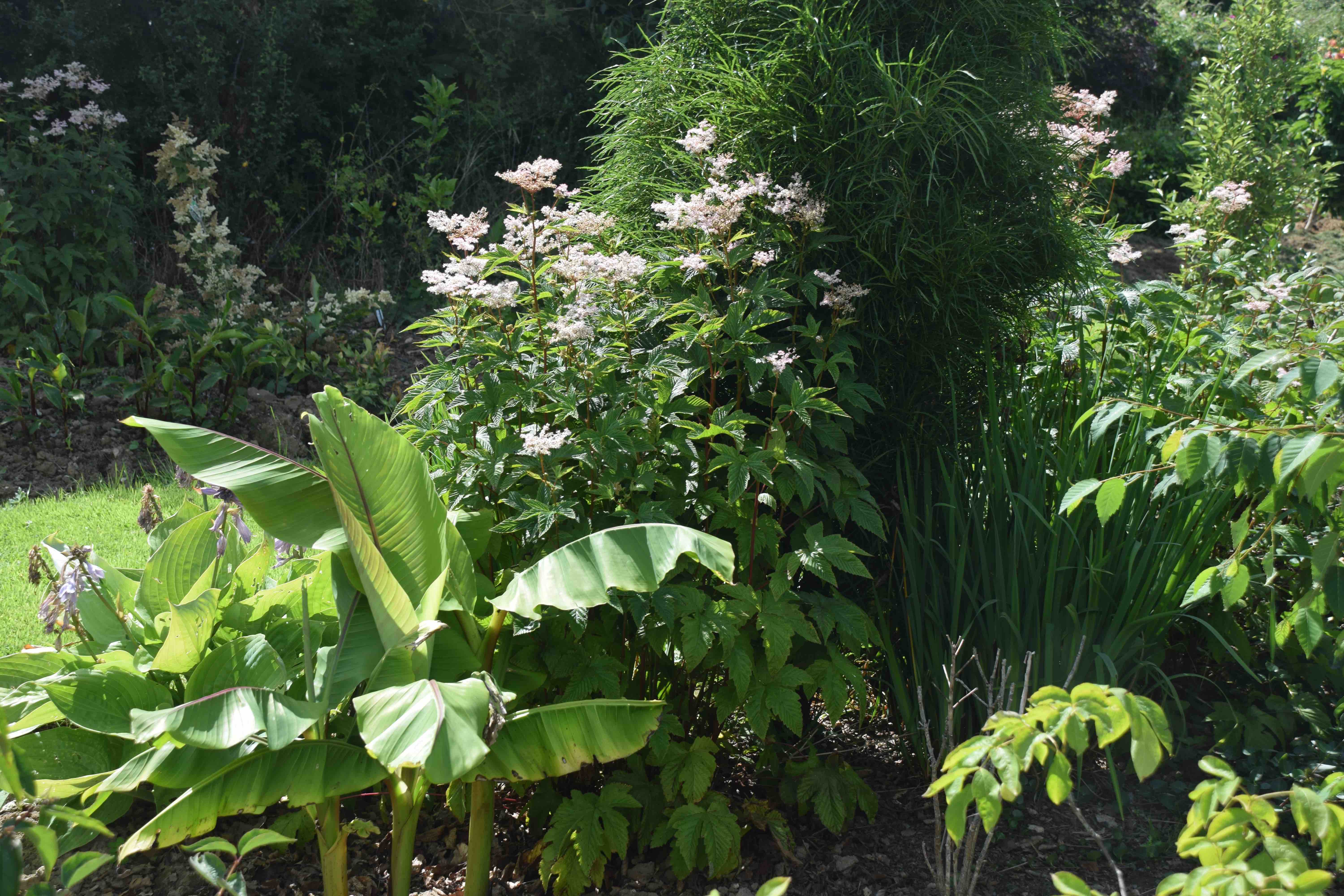 And when I moved the Musa basjoo in spring, frosted to the ground, I was not sure if it would survive. I dug in lots of organic matter and have fed it every time I passed with the bucket of fertiliser, and it seems happy to be in its new home. It will stay here and I think it will perform better than in its previous home which was too shady and dry, though protected from radiation frosts, to some extent, by an overhanging hedge. I will make the effort to protect it this winter and hope it grows strongly.
