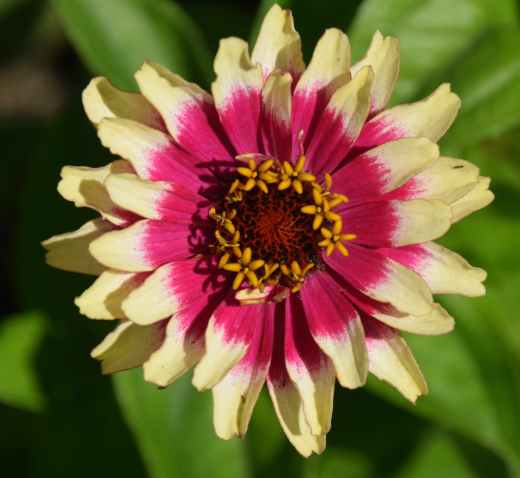 I grow zinnias every year. I like their strange, stiff habit and butterflies love them. Their flowers last for ages and there are some wonderful colours and colour combinations. They are Central American annuals and they do have something about them that not only looks warm and sunny but they also appreciate warmth and sun. They are also easy to grow. They dislike damp and grey conditions but, apart from late summer when cool, damp weather leads to grey mould and makes them look very sad. they always seem to cope with an Irish summer quite well.