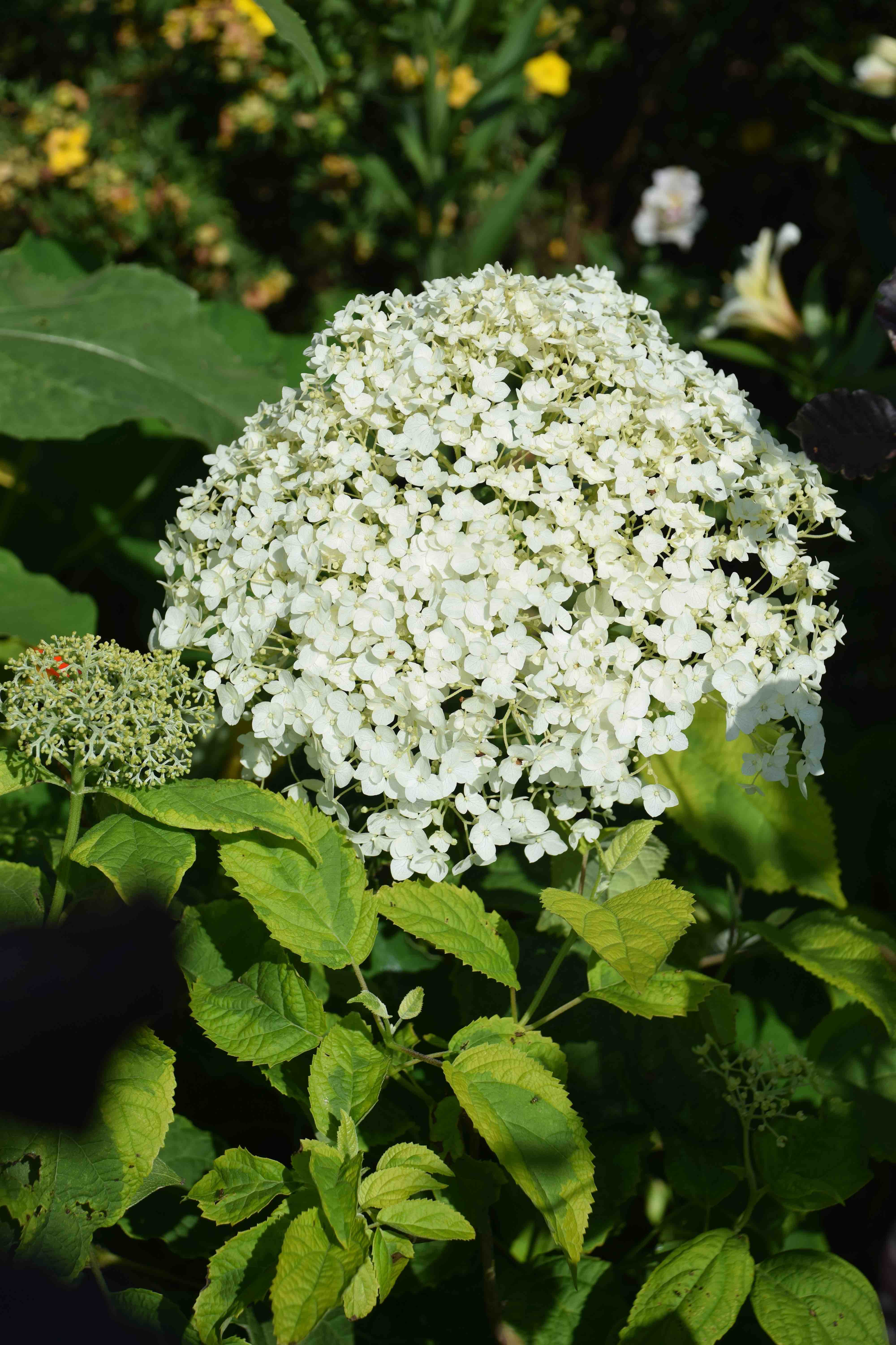 But the new shrubs, planted in spring, have been well watered and are growing well without the need for constant watering. ‘Golden Annabelle’ is an ‘arborescens’ hydrangea that has surprised me with its vigour. I like ‘Annabelle’ in the same way that I like ‘Angel Delight’ with an overwhelming sense of guilt! It is completely vulgar but undeniably effective. When I saw ‘Golden Annabelle’ with yellow-variegated leaves it seemed like having Angel Delight with Dream Topping! (other artifical, non-food, edible products are available). Stupidly I moved the ailing cut-leaf arborescens hydrangea to a different spot and replaced it with this, expecting it to struggle. But perhaps the soil improvement was enough to please it and it has grown really well. I am not sure I need the flowers AND the leaves but the foliage is attractive when the plant is not in bloom.