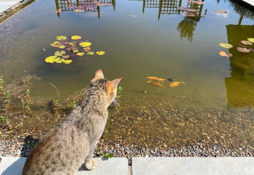 These are the footprints of a heron. I felt so sorry for the fish because no sooner do they associate a shadow by the pond with being fed than a heron arrives and that shadow suddenly means they are going to be food!