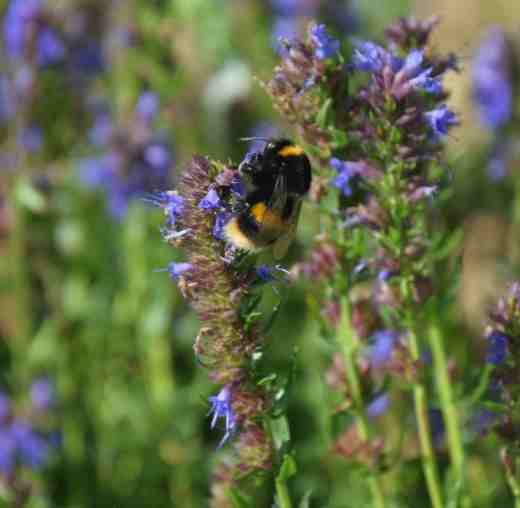 This is quite unusual and I often find that what suits the bumblebees is not always flavour-of-the-month for the honeybees. The Chinese forget-me-not (Cynoglossum amabile) is a case in point (apologies for the awful photo – it has been windy! ). This hardy annual self seeded from plants grown last year and makes a nice filler. The flowers are mobbed by honeybees but bumblebees are not that bothered. I have always noticed the same with limnanthes.