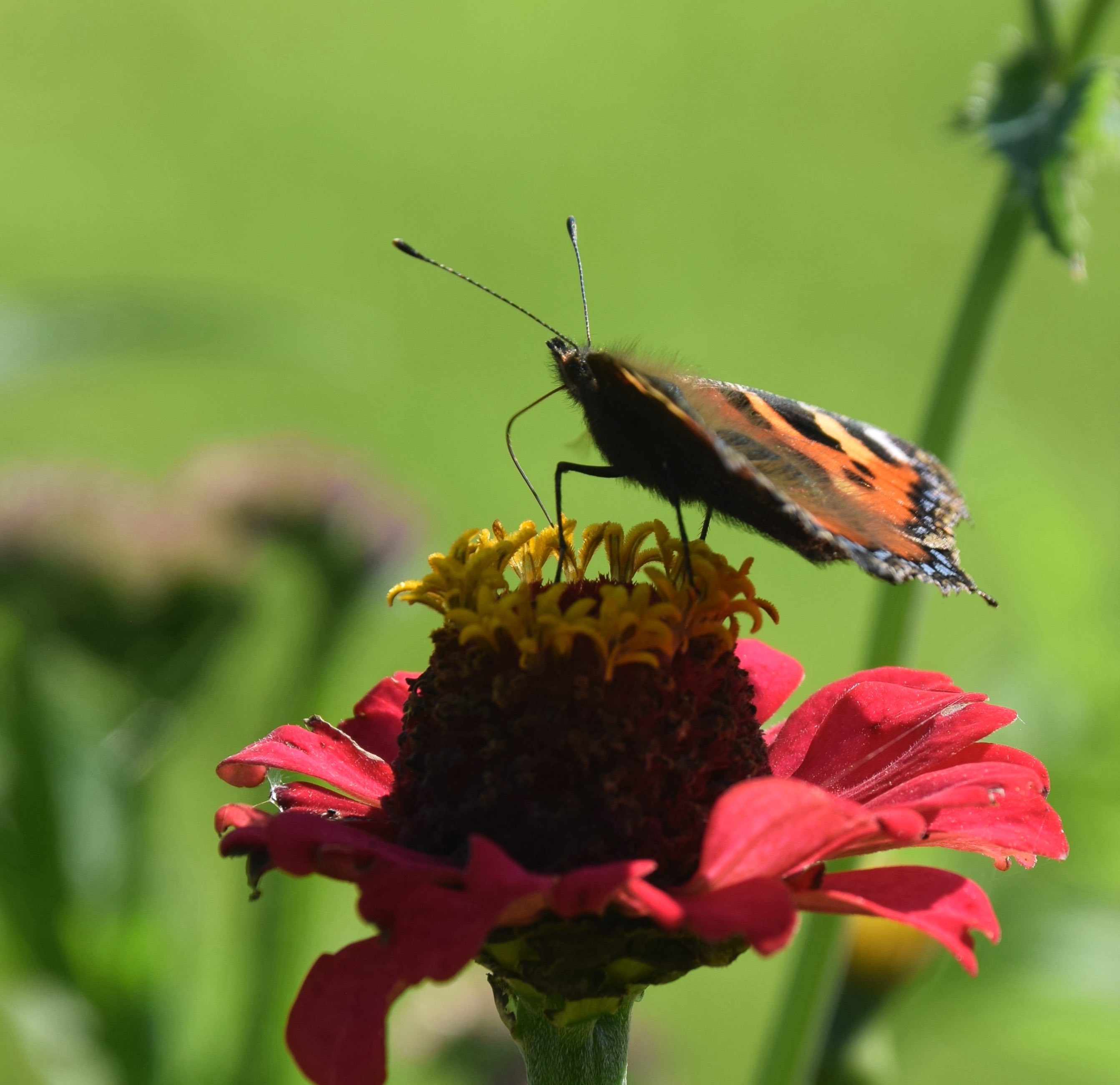 The zinnias, which turned out to be single, rather than double, have delighted the butterflies of all kinds.