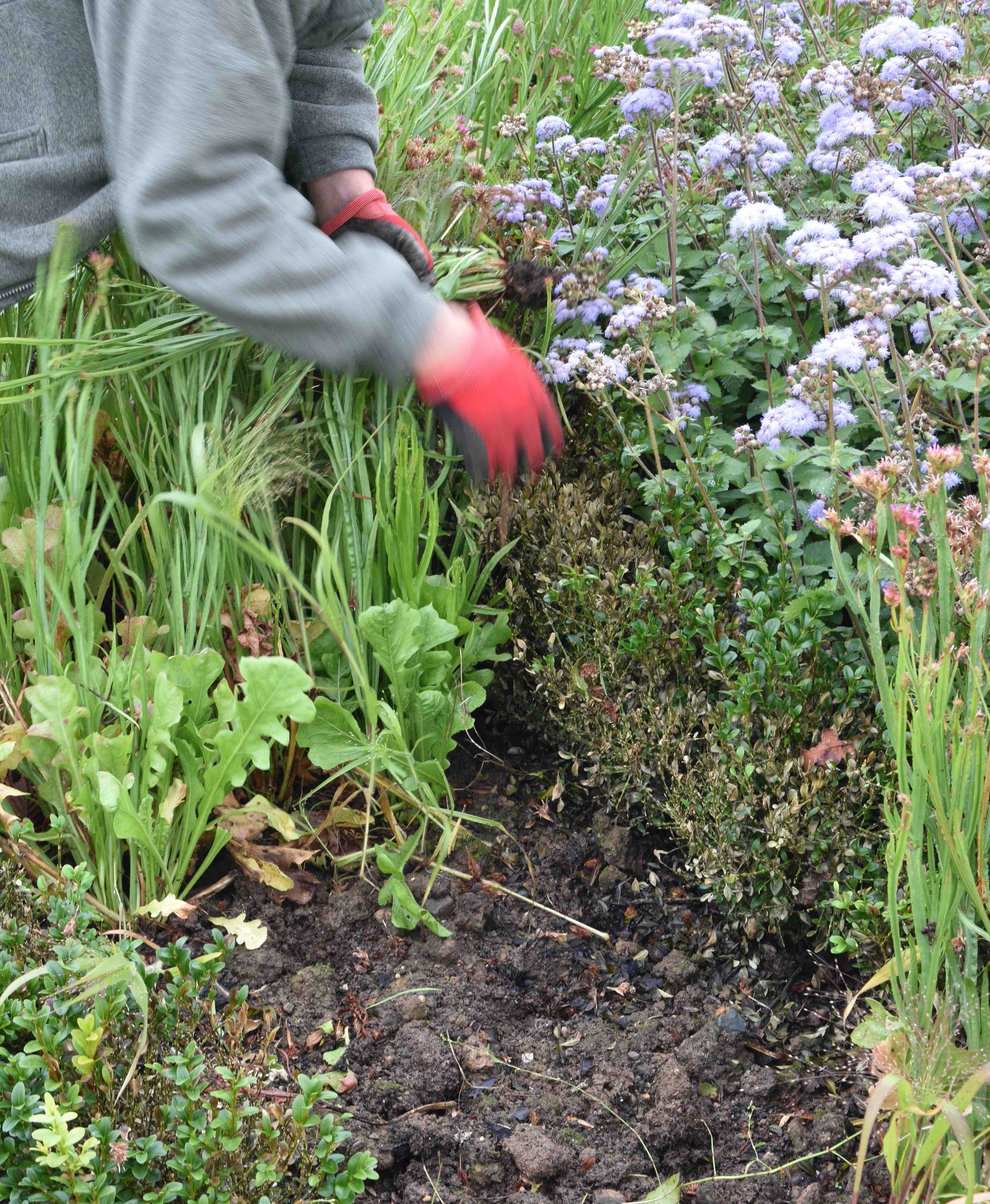 The statice and ageratum grew well, too well. For they smothered the hedges and, combined with a wet summer, kept light and air from the box and produced shady and damp conditions. Box won’t hate this but box blight loves it!