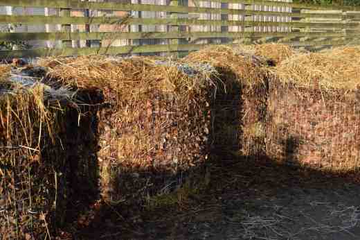 If you dump a pile of grass cuttings, it will decompose but, being wet and soft, the material will make a black sludge because there will be no air in the heap to allow the aerobic bacteria to thrive. It will be cold and smelly. In contrast, if you leave a pile of woody shreddings or dry stems like straw, it won’t get hot or decompose well either because it may be too dry and there will be no nitrogen to ‘feed’ the bacteria. That is why strawy manure, makes a great product, combining ‘woody’ straw to keep the compost ‘open’ and lots of nutrients from the manure. Leafmould decomposes slowly because it is woody with low nitrogen levels but if mixed with grass cuttings it speeds up considerably.