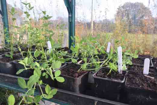 In the cold part of the greenhouse the sweet peas are sown. I half-heartedly grew them as cordons this summer and they were very popular for flowers sales at the gate so I have invested in some exhibition varieties for next summer with a wide colour range and chosen for scent. I am determined to grow them properly and have them sown. As usual, it was difficult to choose and I managed to narrow it down to 25 varieties. I have sown just 4 pots of each, hoping that I get three plants of each.