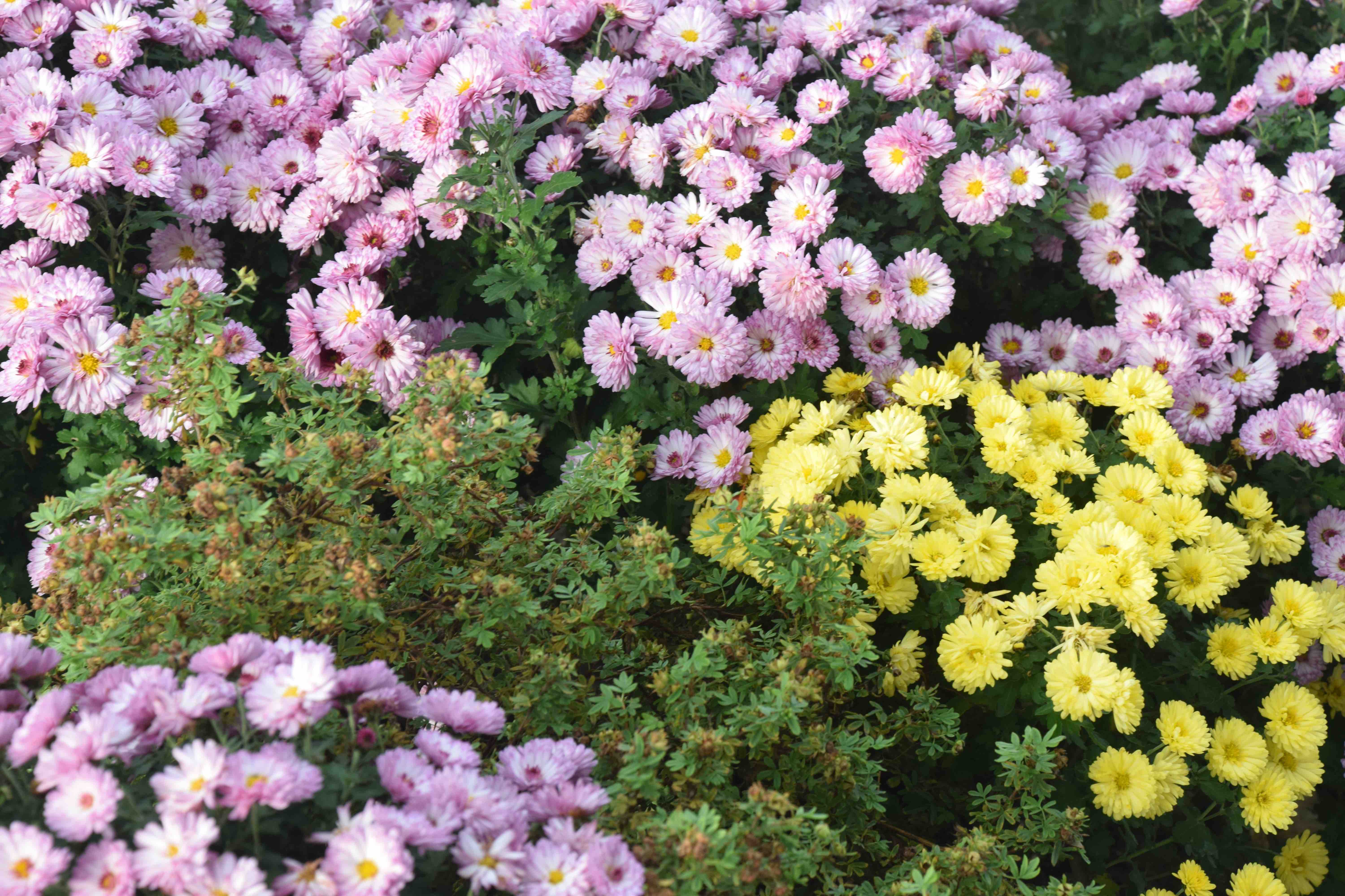 The chrysanthemums are stubbornly tardy and it is tempting to give up on them but as October slips into November they pay their rent and then some. My favourite remains ‘Mei Kyo’. I do not know how old it actually is but it was brought to the UK by Will Ingwersen from Japan in the 1950s. I used to have several of these ‘miniature Korean’ chrysanthemums which all have small, button flowers and the yellow one I now have, which accidentally got planted here, is unnamed.