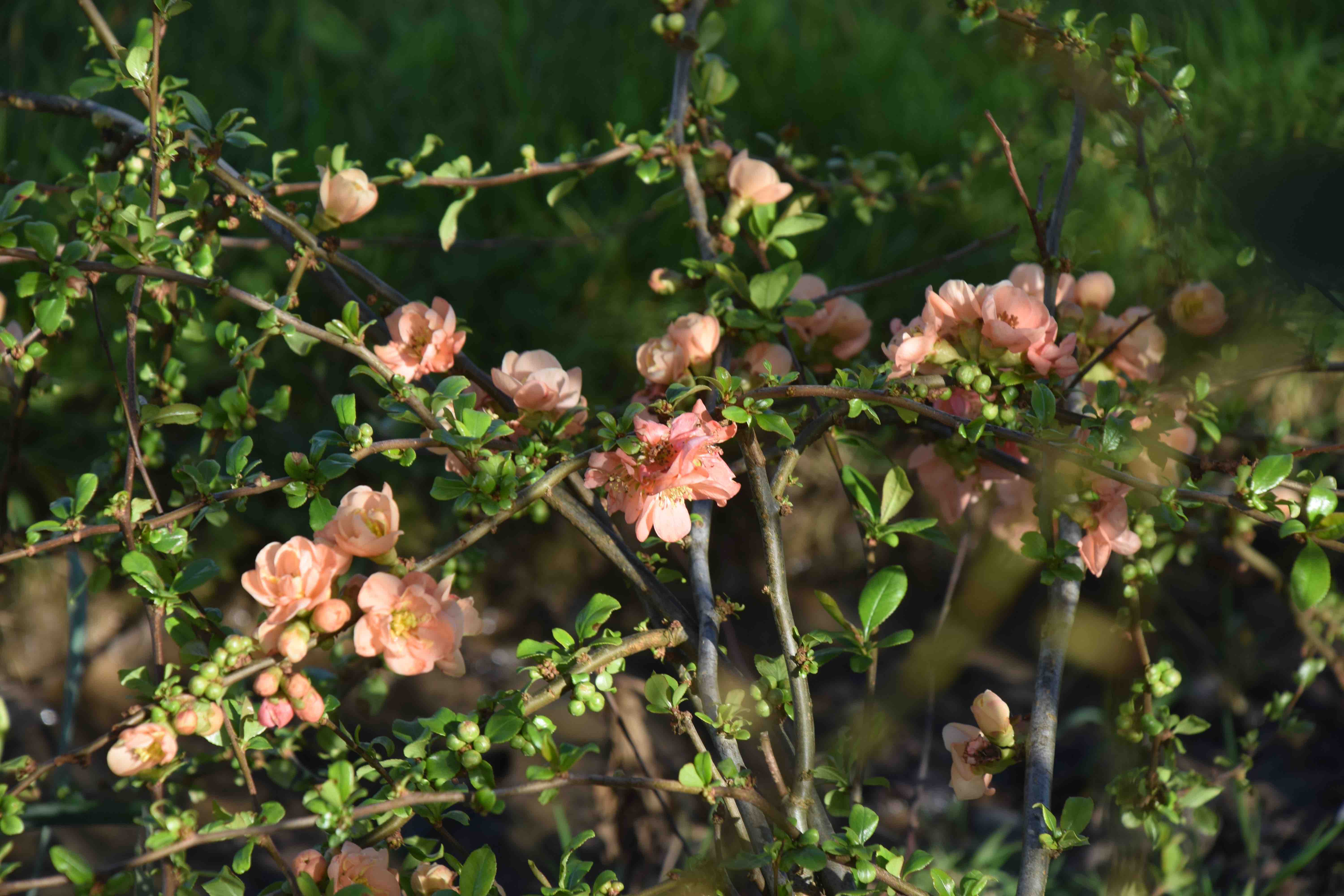 A few reliable old plants bring joy. Chaenomeles are making a small impact on the garden – I only have two in the garden so far – and ‘Geisha Girl’, one of my favourites, is starting to make a show.