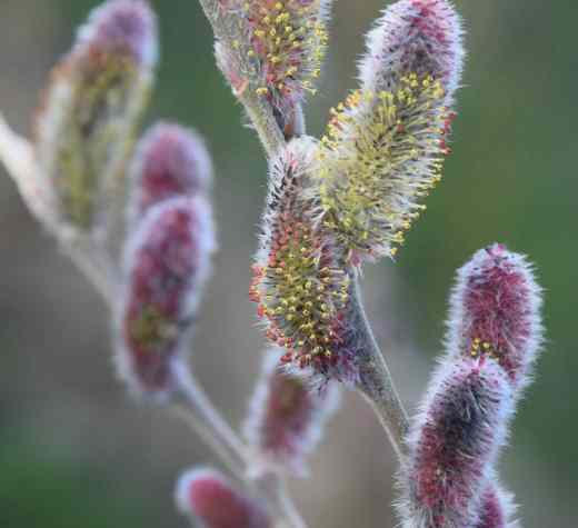 And salix ‘Mt Aso’ is just coming to an end, the pretty pink catkins expanding and being ‘spoiled’ as the yellow stamens emerge.