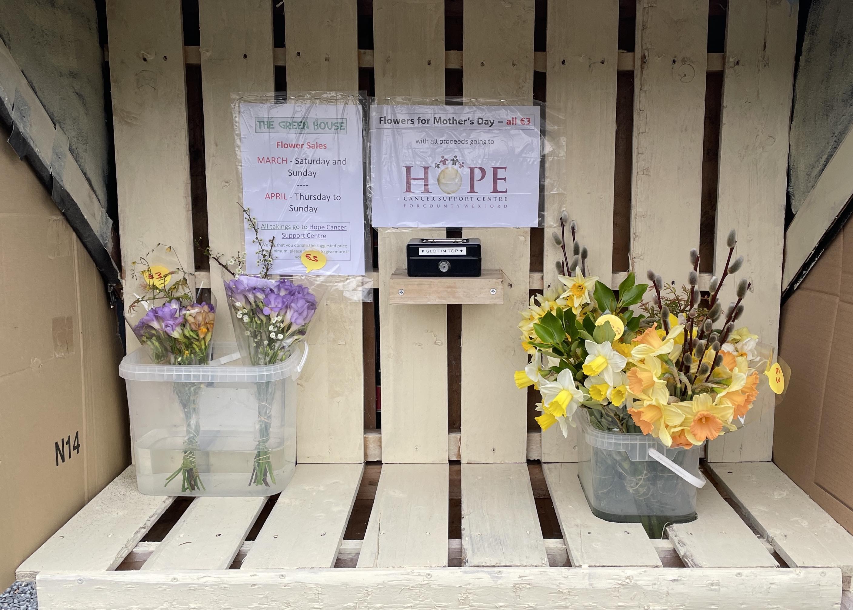 The past weekend was devoted to our first weekend selling flowers to raise money for Hope Cancer Support Centre. It coincided with Mothers’ Day and we sold 20 bunches, which was about all I could find in the garden and included two bunches of freesias from the greenhouse – there should be more for a few weeks. The daffs should keep going for many few weeks and then the tulips will be raided. These are all from previous year’s tulips. I lift them and sort them and replant in the raised beds in October. Some varieties are four years old and although they now get very mixed and the small bulbs do not all flower, a good proportion do and there are more each year. I only keep the largest to replant and am getting the hang of what a flowering bulb looks like.