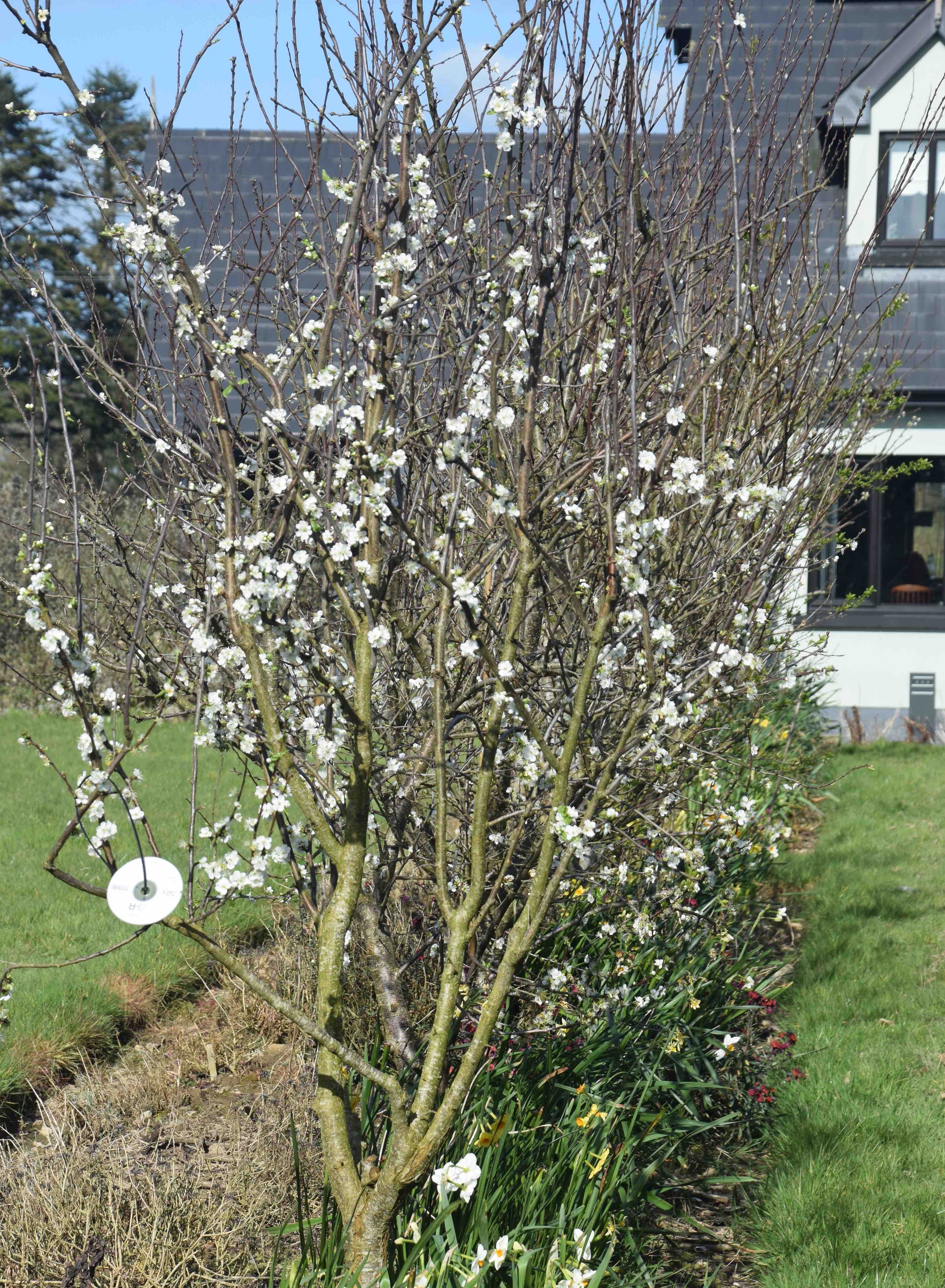 I have mentioned the plums already this year but things are looking good at the moment with ‘Jubileum’ plastered with blossom, like the rest. I hope this wet weather will not damage the blossom as much as the usual frosts that limit pollination. I am pleased to see that the bumblebees are flying, despite the deluge, and are busy on the honey berries so I hope some take an interest in the plums too.