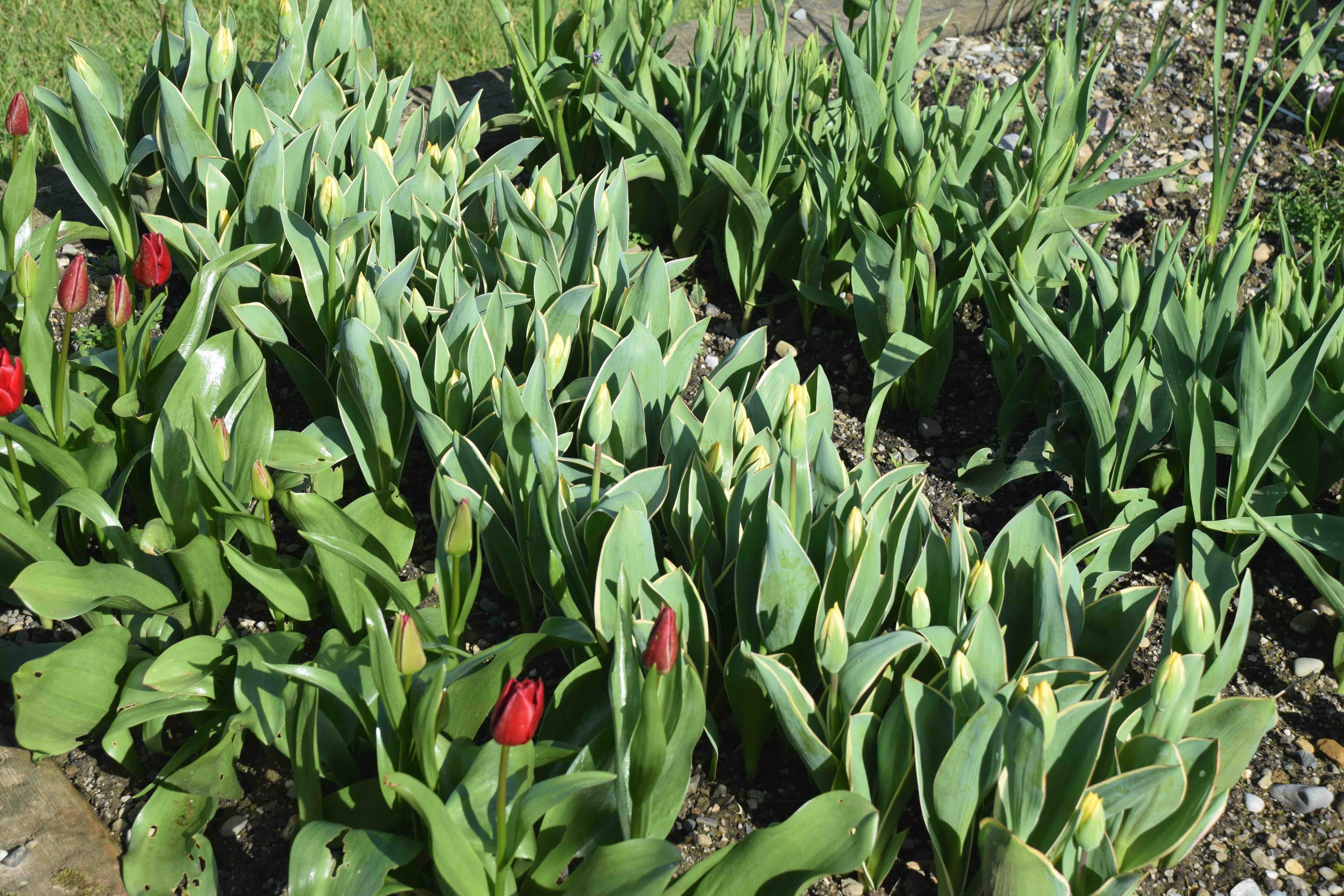 This weekend there will be lots more tulips in the bunches if we get a little warm weather. There are plenty coming along in the two raised beds.