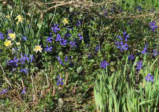 I still have two, slowly spreading, clumps that are creating interest and make a good backdrop to ‘wild’ daffodils and the effect is pleasant enough. Though a ‘form’ of Vinca major it is less dense, lower and less rampant in habit than other forms I have grown.