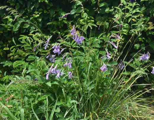 In common with many Irish gardens, dieramas do quite well here. I don’t have a huge selection and they have not started seeding around yet but I am happy they grow and bloom. I think you need to see them in bloom when you buy them because none of mine are what I thought they were though this ‘blue’ one is as expected. They don’t like disturbance much which is a problem with this clump which has been colonised with Arrhenatherum elatius subspecies. bulbosum, one of the worst weed grasses with bulbous stem bases. It is really difficult to remove the grass from the grassy dierama foliage. I have failed so far and I fear I will keep on struggling for some time to come.