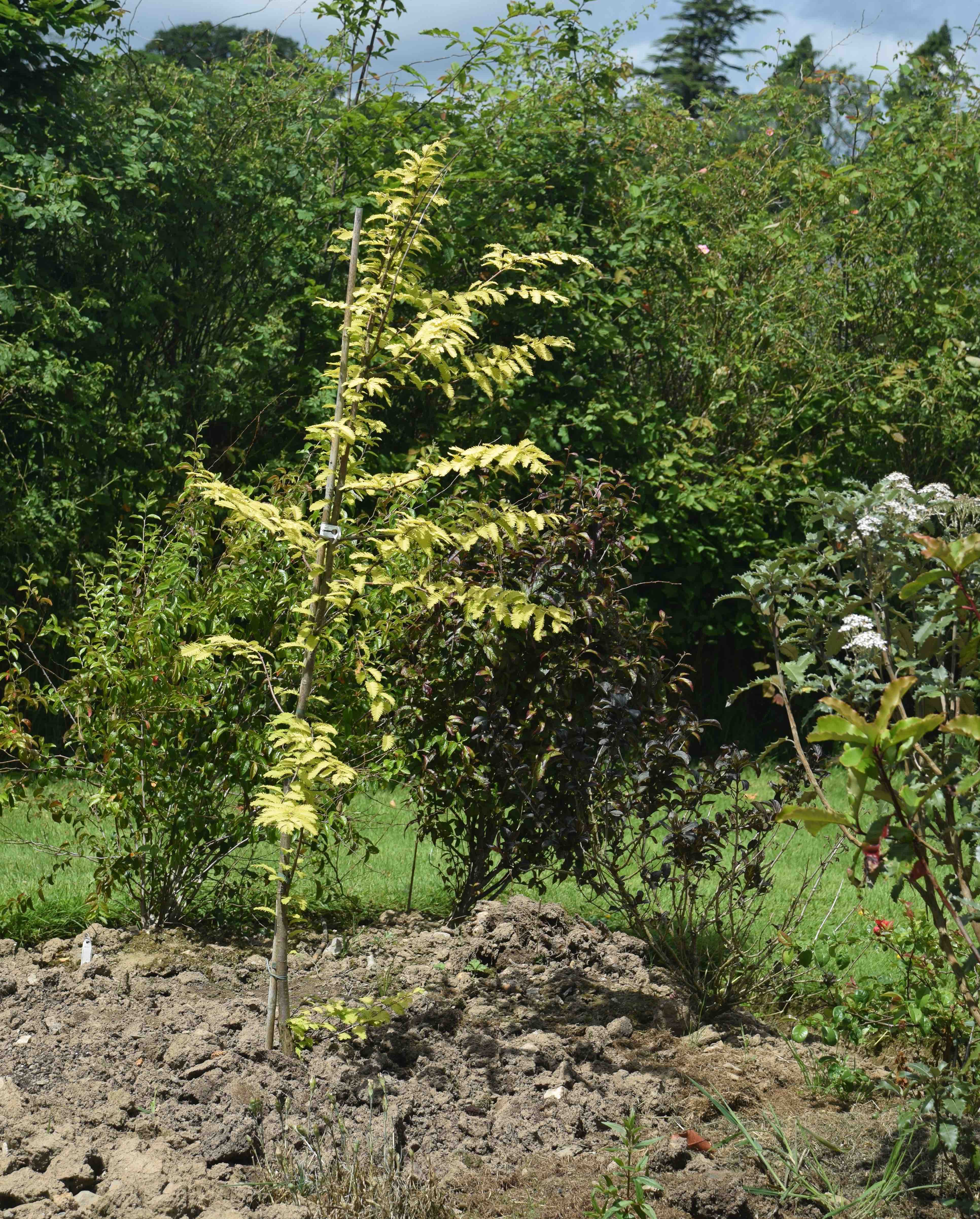 But, emboldened by the success so far, last week I took the plunge and at the other end of the garden planted ‘Golden Oji’ in a bed opposite the above hydrangea. The two can see each other so the newcomer will be able to get an idea of what it is supposed to do. From most areas of the garden the tree will have a dark background and it gets sun for most of the day, being further from the hedge.