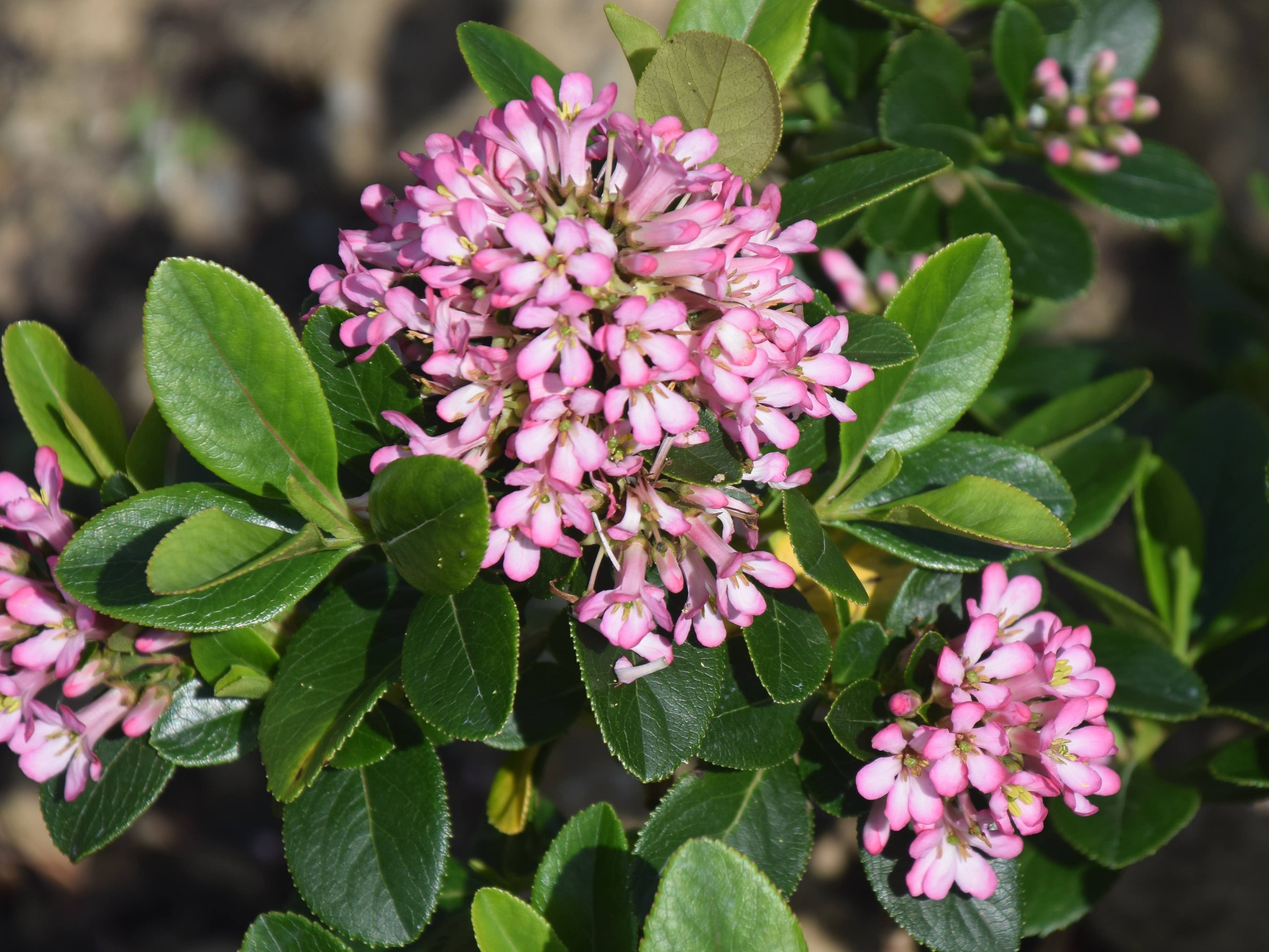 Escallonias are useful evergreens that are most associated with coastal planting because they prefer mild winters and withstand salt-laden winds. They are useful shrubs and have profuse, small, five-petalled flowers that are attractive to insects but somehow they are just not very exciting. Most have small, glossy leaves and most (but not all) are evergreen and they grow quite quickly. Flowers are usually pink but can be white or red and some are fragrant.