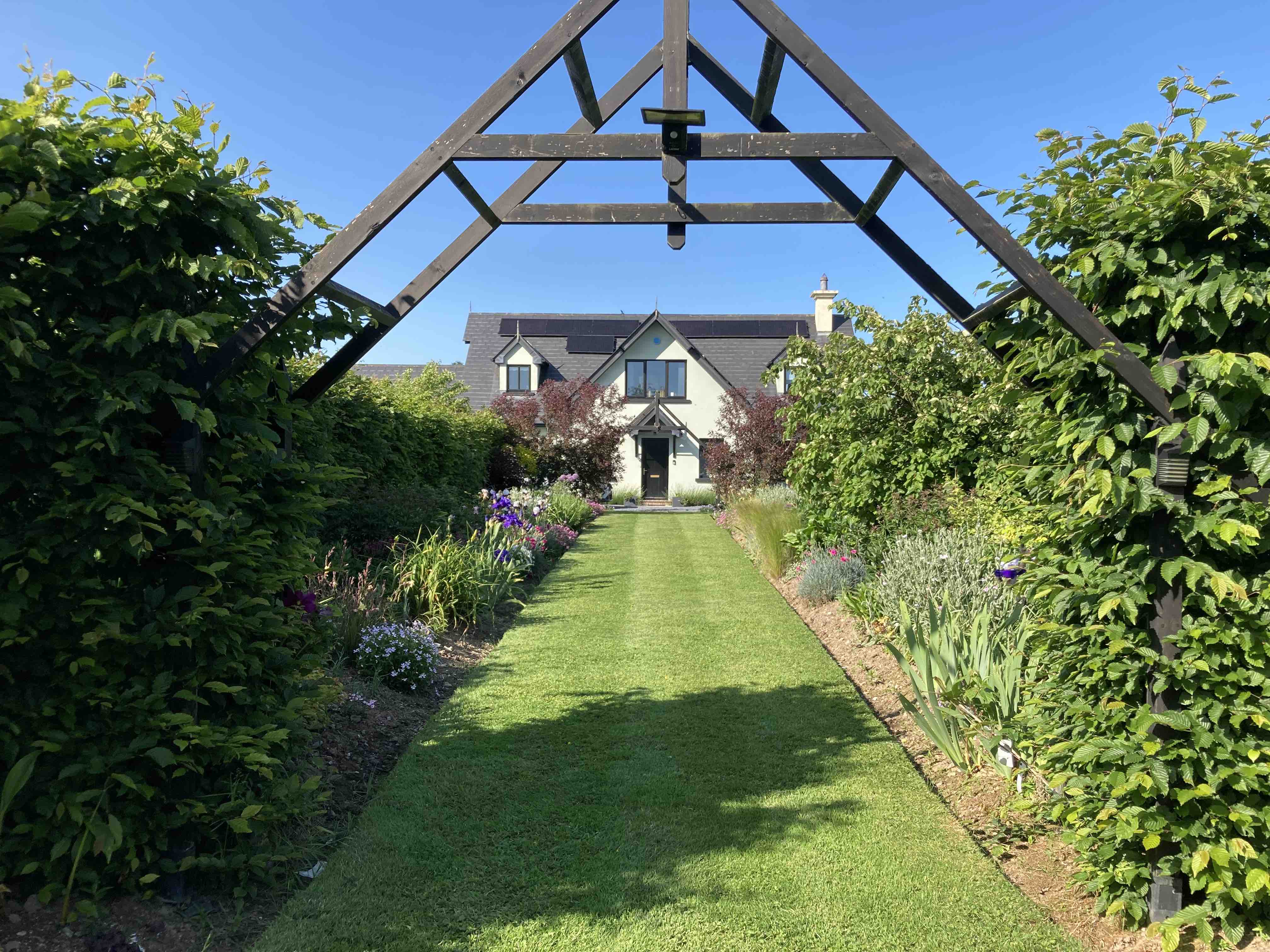 Last weekend we had visitors staying. It meant that time was divided between frenetic weeding and mad washing and dusting. It was a manic time in preparation and then doing the tour guide ‘bit’ showing off the best of (local) Ireland. As things calmed down a bit and weeding became less important, someone who came to buy flowers for Hope at the gate asked to see the garden. Without a hoe or trowel in my hand I saw through new eyes and the changes to the garden, and the sense of maturity struck me. When a garden is constantly demanding attention- and it still does, every day – it is difficult to make time to stop and look. In fact my visitors asked how often we sit on the five benches and numerous chairs scattered around the garden and I said ‘never’. Which is largely true.