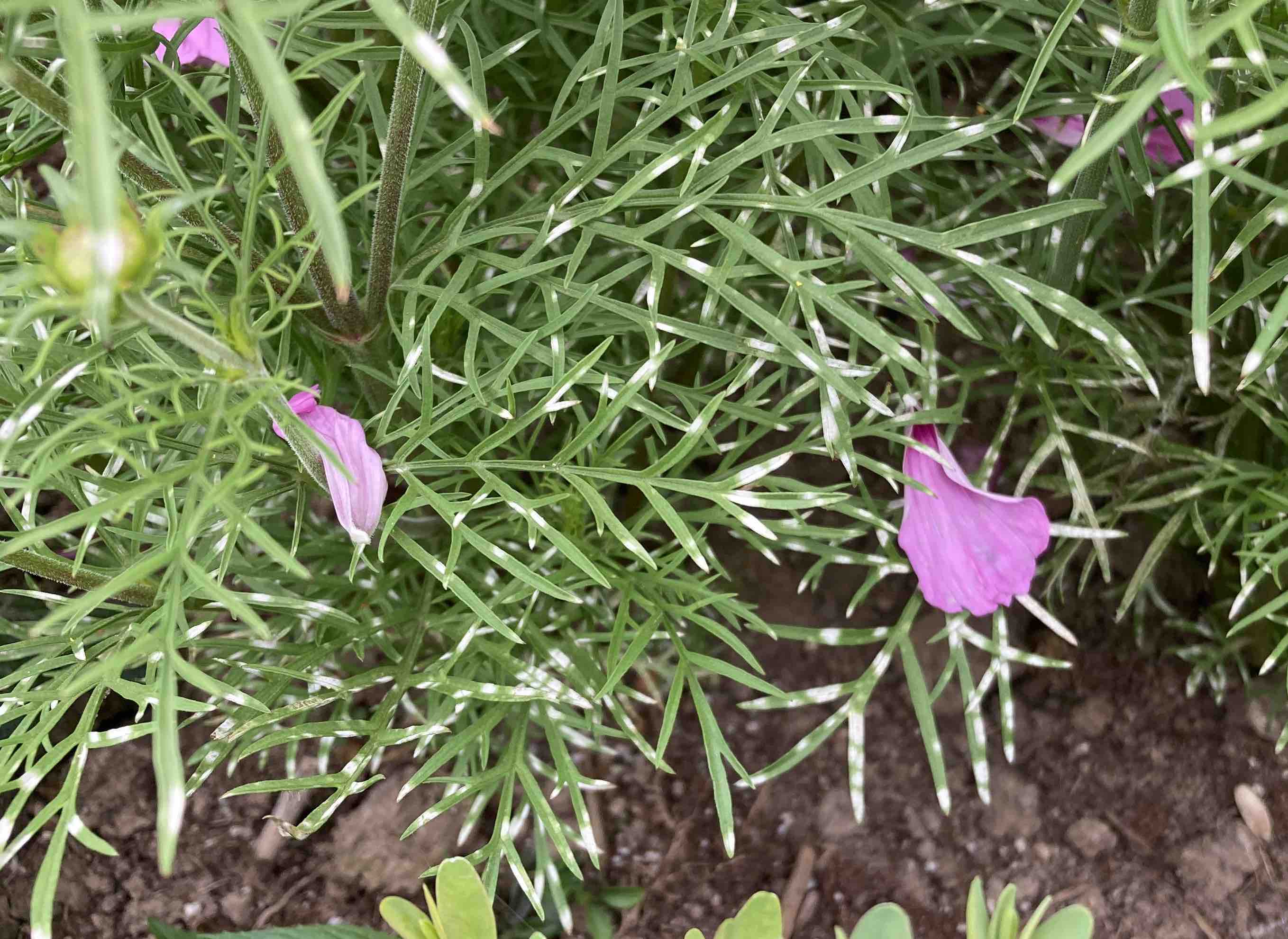 Late the other day, when all the urgent weeding was done and I had completed the watering, as far as I could tell, I allowed myself the luxury of deadheading the cosmos in the ‘bedding’ bed. And while I was searching the plants for spent blooms I noticed white spots on the ferny leaves. It was not actually a discovery because I had noticed a few previously, but now there were lots of plants affected.
