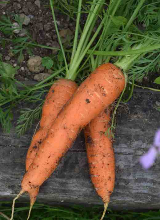Well, carrots need a light, ‘open’, or sandy soil. They do not do well on recently manured soil – excess nutrients lead to ‘forked’ roots. If the soil is stony it can lead to misshapen roots too as the tiny tap root hits a stone and bends or branches. Of course, you should never transplant carrots either because that will lead to bent roots or to the plants ‘bolting’ and flowering prematurely. Pots of carrot seedlings in garden centres are my pet hate. My soil is heavy and I often thought that the only thing it grew was stones. Well – rocks.