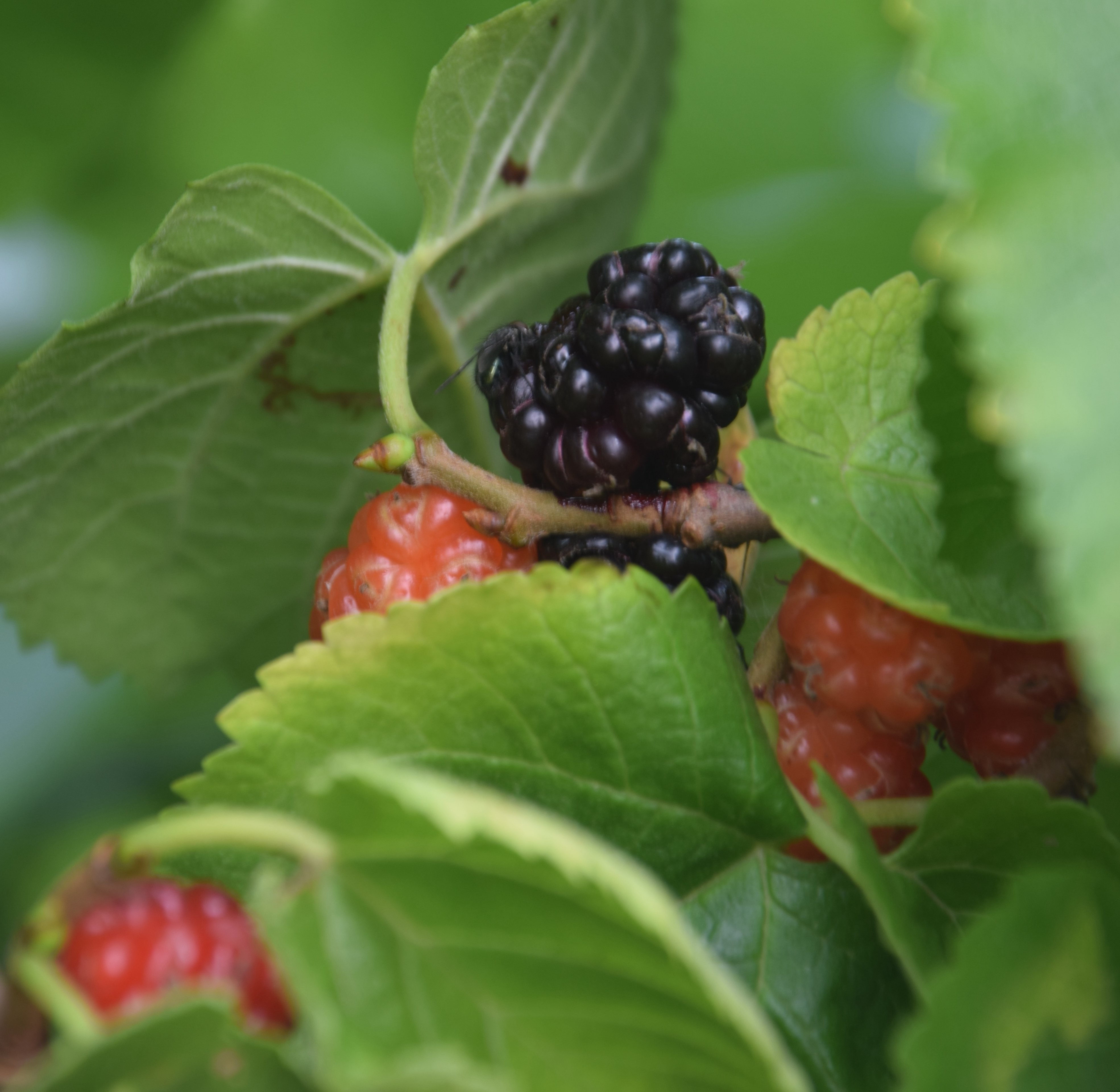 I like the variation that comes from eating seasonally. And it is the season for mulberries (Morus nigra).